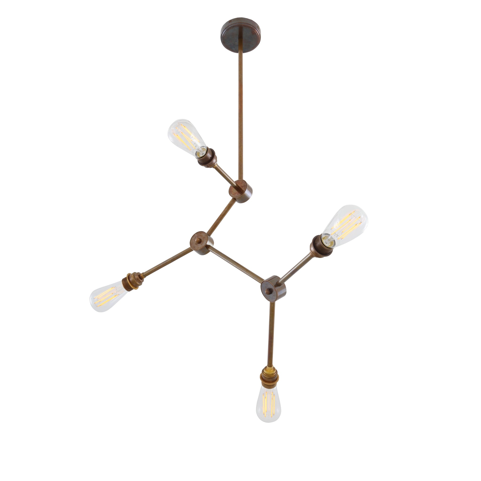 Crafted from solid metal with a hand-finished patina, the fixture features exposed-socket detailing and tapered arms that create layered lines and even light distribution. The clean geometry works seamlessly in contemporary, transitional, and minimalist schemes, while the warm metal tone complements timber and stone palettes.