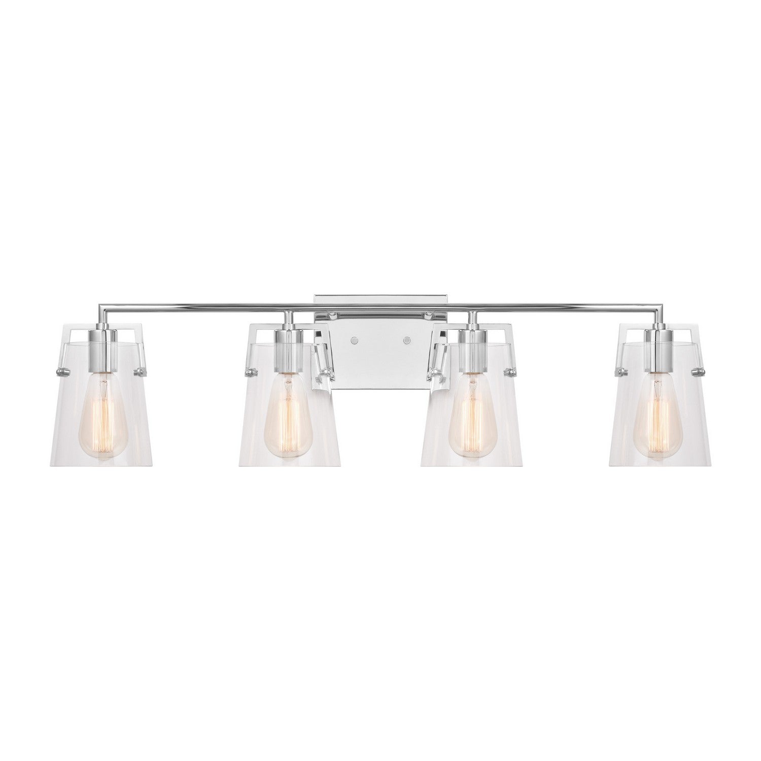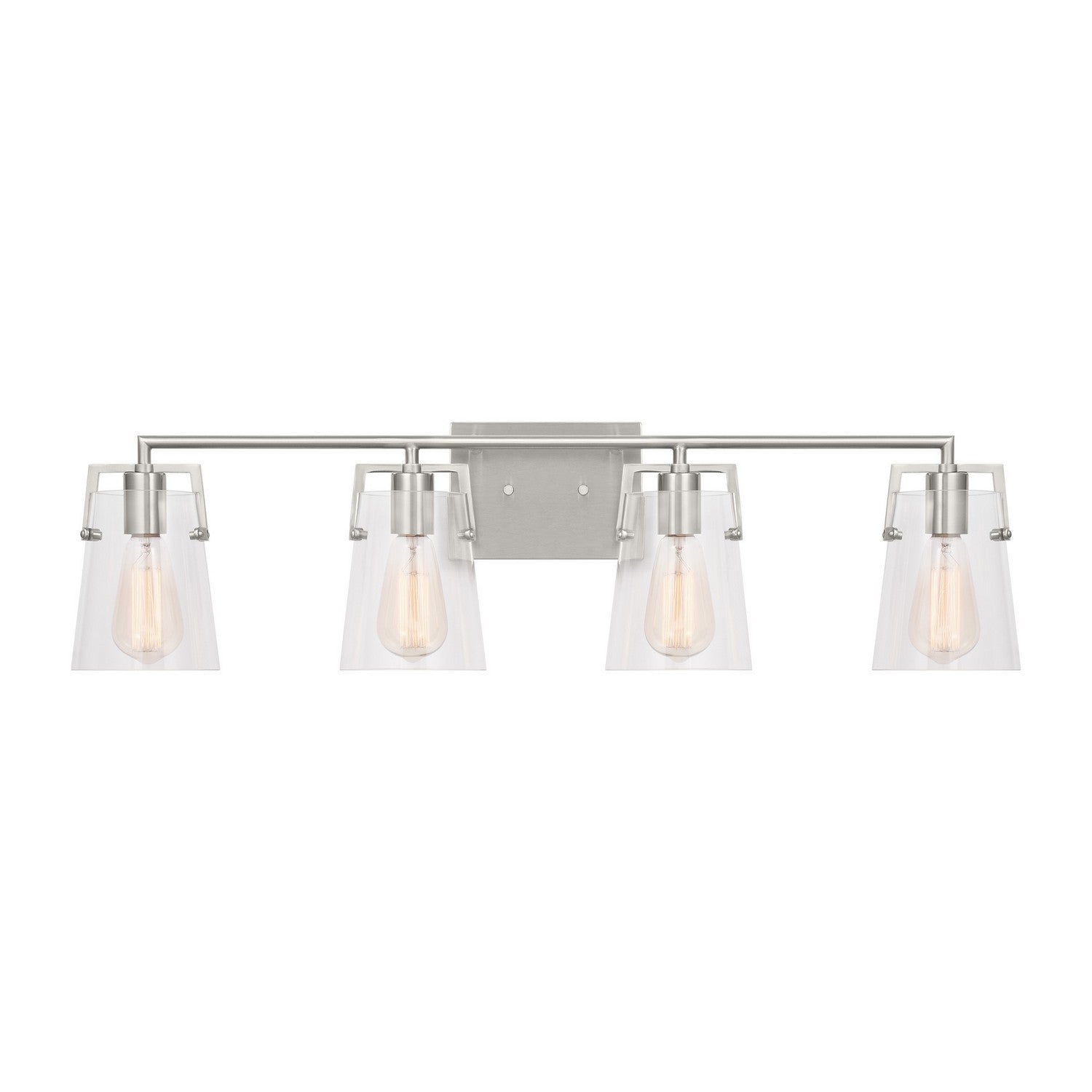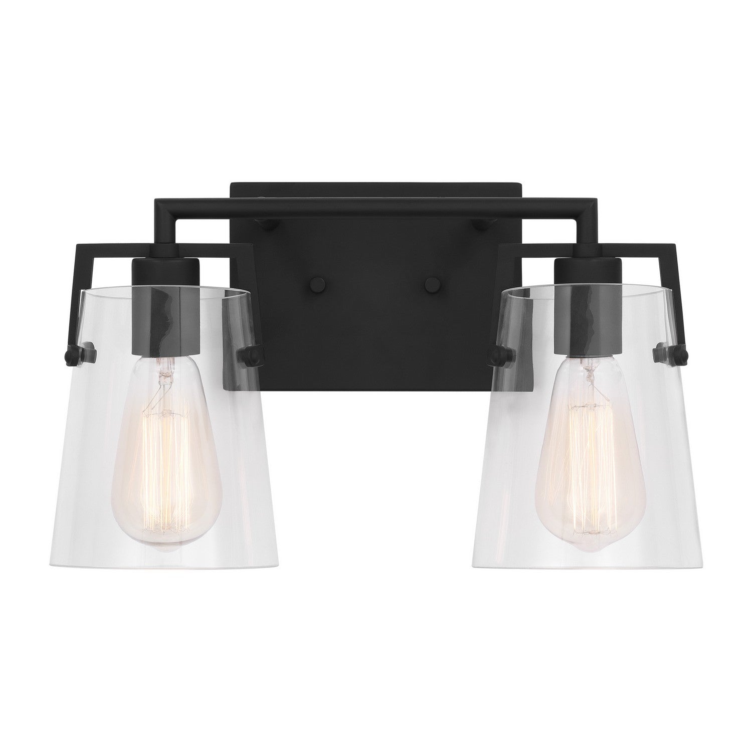 Add a bright burst of light where you need it most with the stylish Drew & Jonathan Crofton Two Light Wall / Bath Sconce, featuring a sleek rectangular metal backplate and clear glass shades. Made to coordinate across a broader range of bath hardware and design styles, the Crofton is available in four popular finishes, Brushed Steel, Chrome, Midnight Black, and Satin Brass. This light looks great on its own or installed above a bathroom vanity, and the glass shades make it ideal for filament bulbs. This fixture may be mounted in the up or down position, and is cETL listed for damp locations, making it the perfect lighting solution for any space.