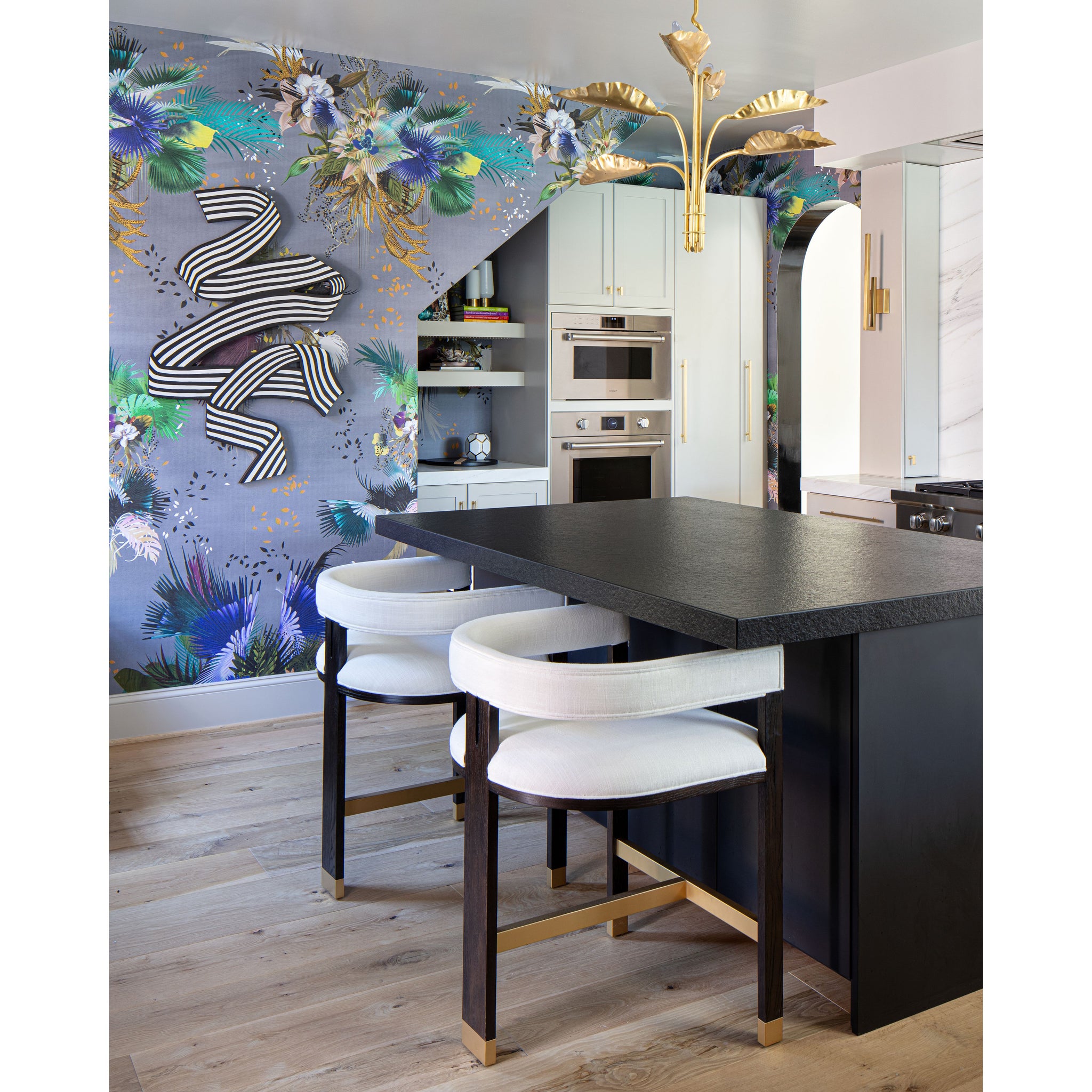 Perfectly tailored in crisp white linen upholstery, the barrel back Cruise counter stool exudes mid century mod style and attitude. Its durable tri-leg, solid frame with rich finish forms a highly sought-after silhouette that's perfect for all occasions.