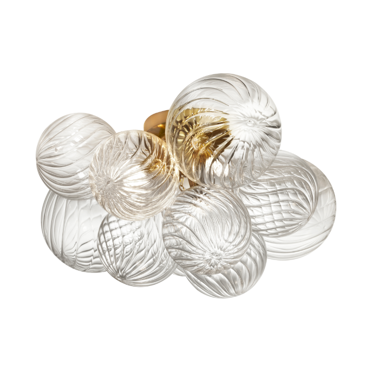 Dainolite presents the 3LT Flush Mount, AGB with CLR Spiral Glass — a sculptural ceiling light fixture that marries artful form with practical function. Its cluster of clear, spiral-cut glass globes creates dynamic refractions while maintaining a low-profile flush mount suitable for contemporary ceilings.