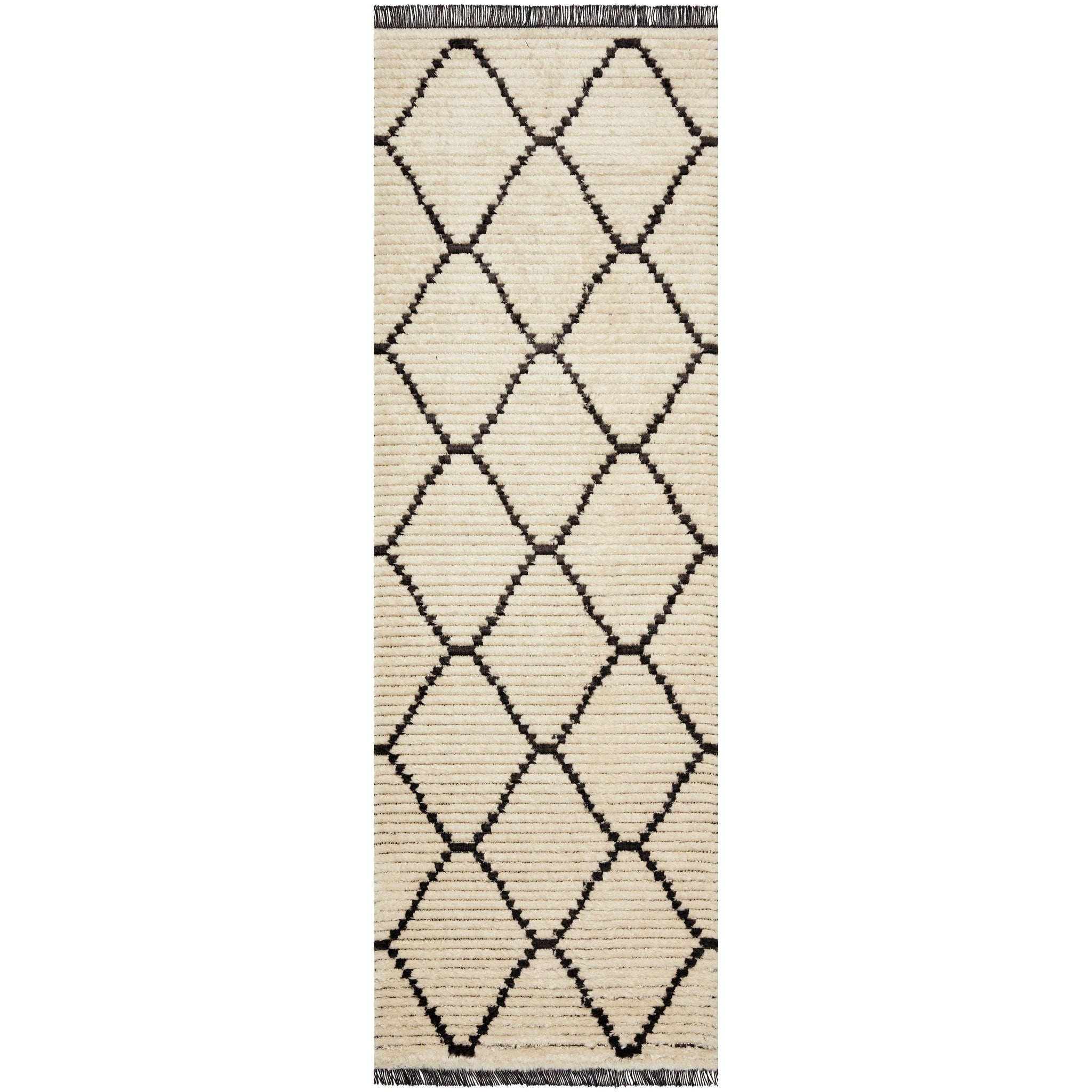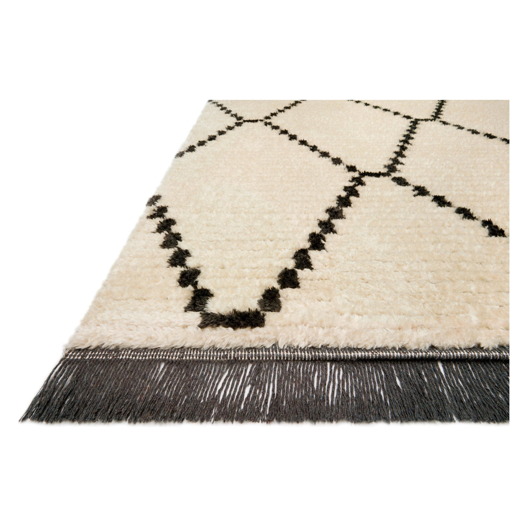 Alice Ali 04 Cream Charcoal rug from the collaborative Alice Collection by Chris Loves Julia x Loloi. This rug draws inspiration from the timeless Moroccan rug design, offering a blend of durability and softness for your space. With its high-low texture and warm earthy tones, the Alice Ali 04 adds a touch of elegance to any room.