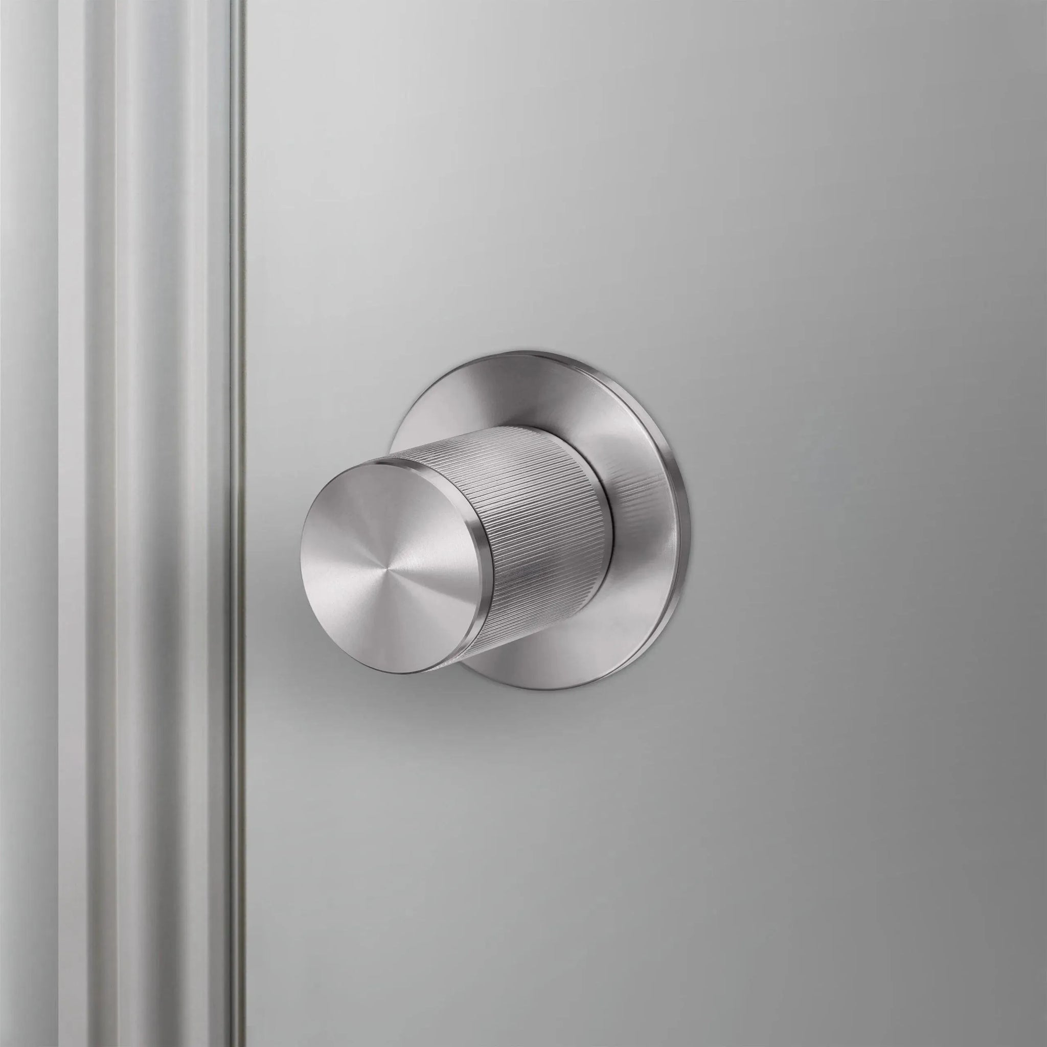 A door knob set made from solid metal and featuring our elegant linear knurled detailing. Works great on all internal doors and can be combined