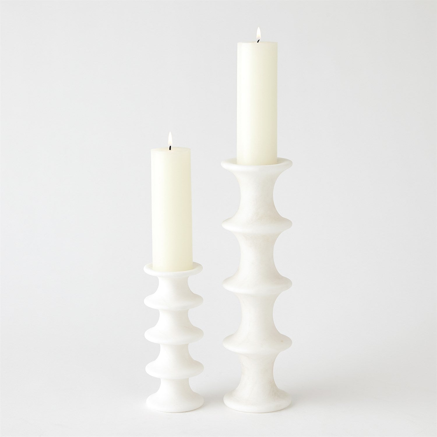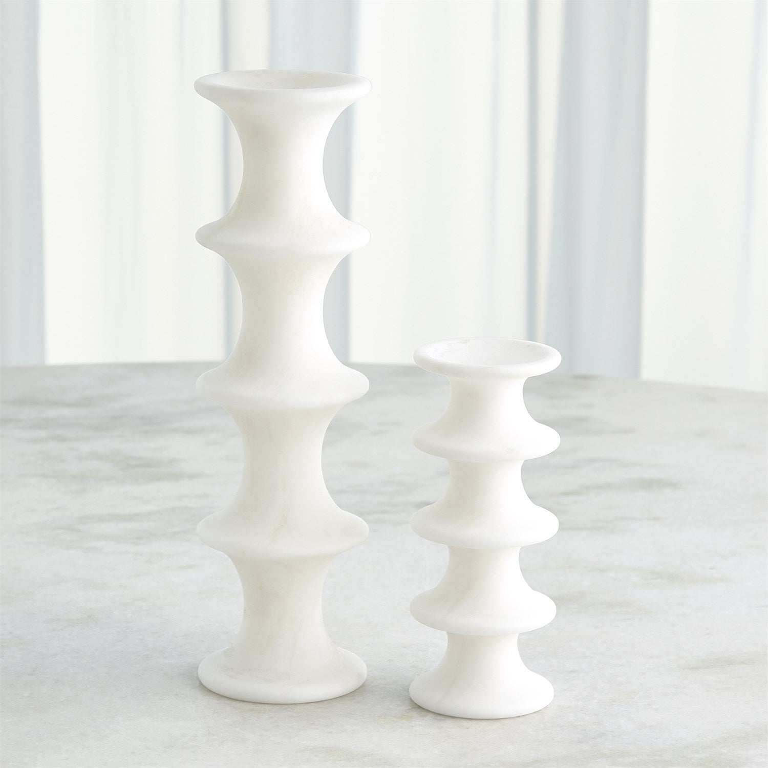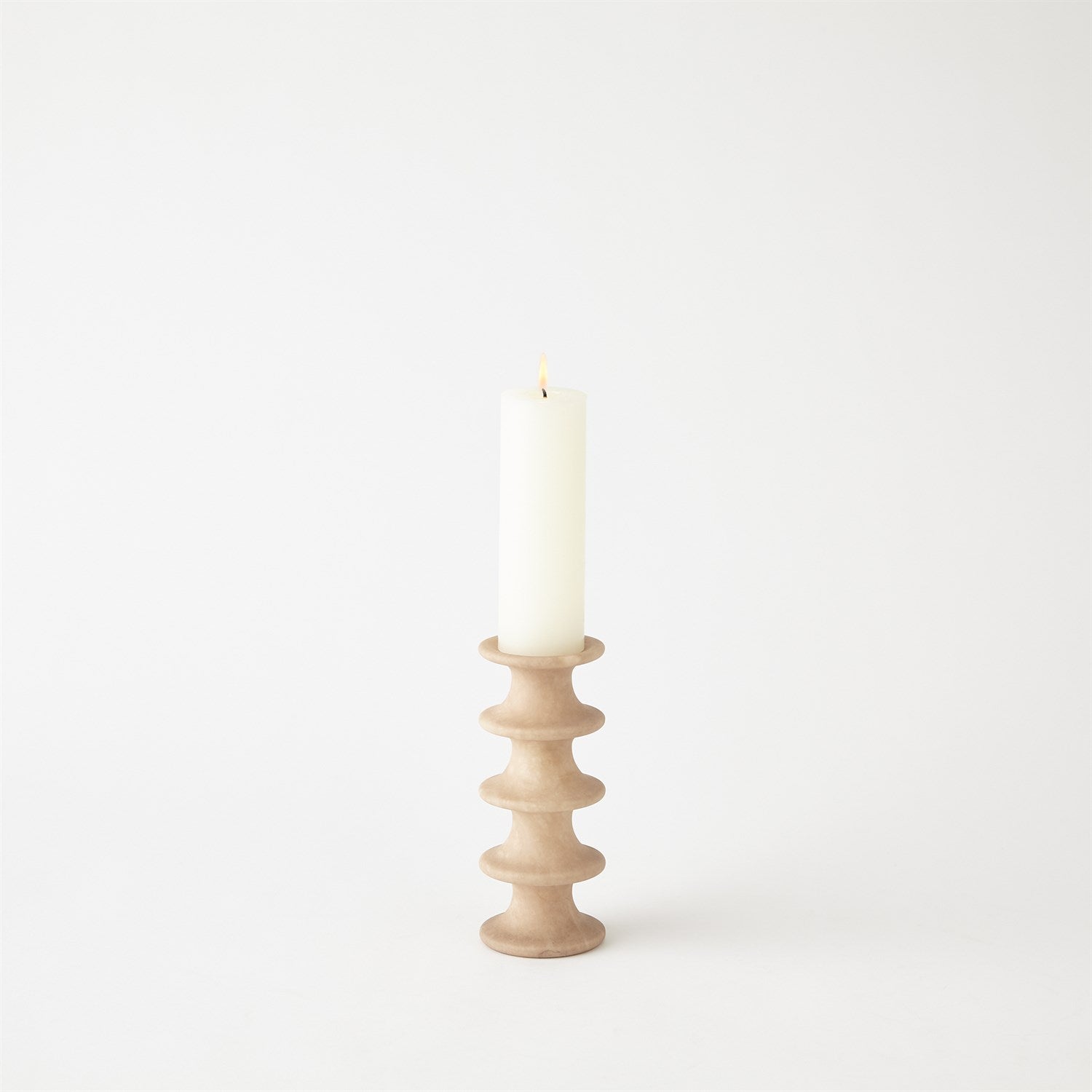 Horizontal fluting compliments the solid alabaster of our Ridge Candlesticks. Designed to hold a tapper or pillar candle, these are beautiful as a stand-alone accent or displayed in a group. As alabaster is a natural product, please be aware that there will always be variations in veining and color. This is to be expected and makes every alabaster product uniquely your own.