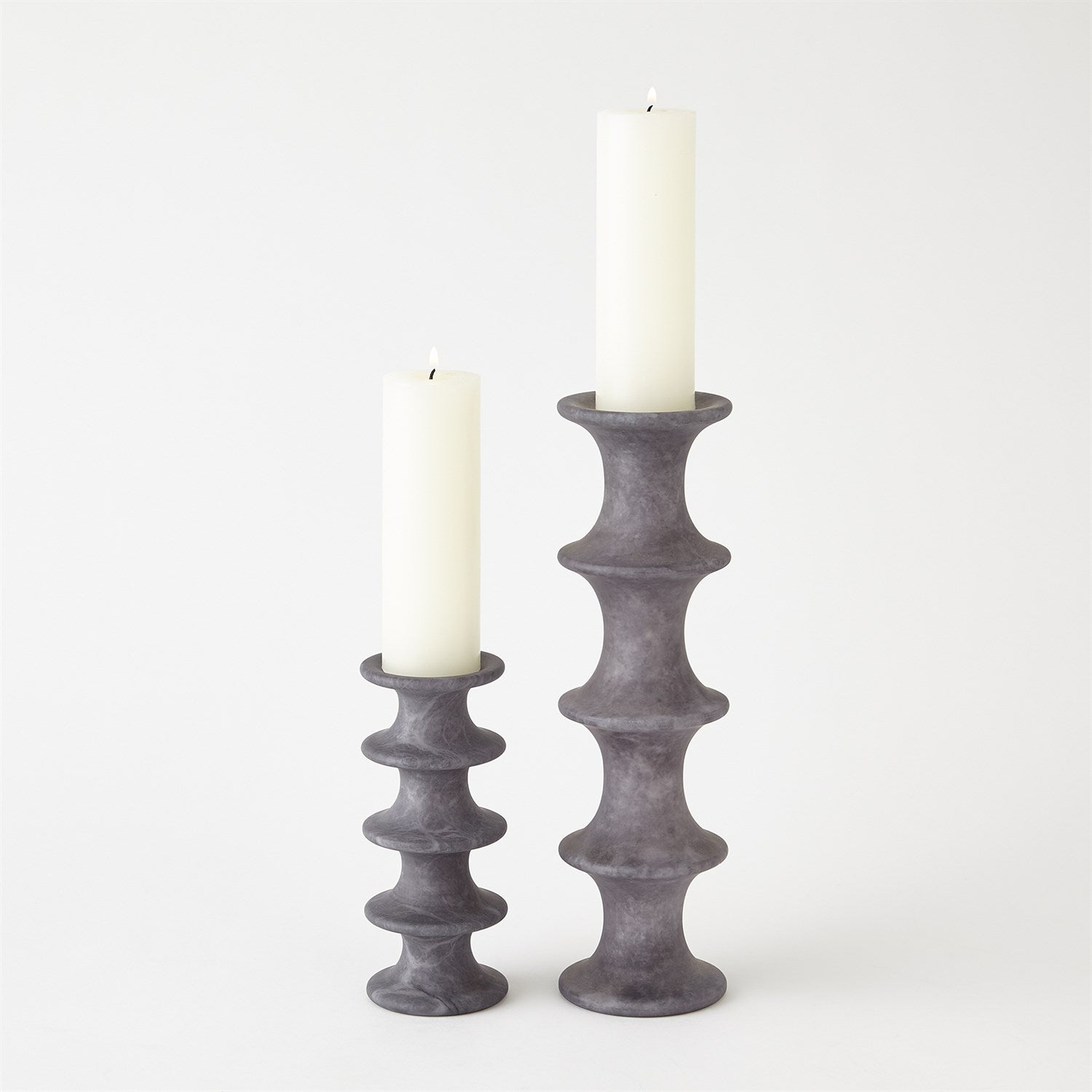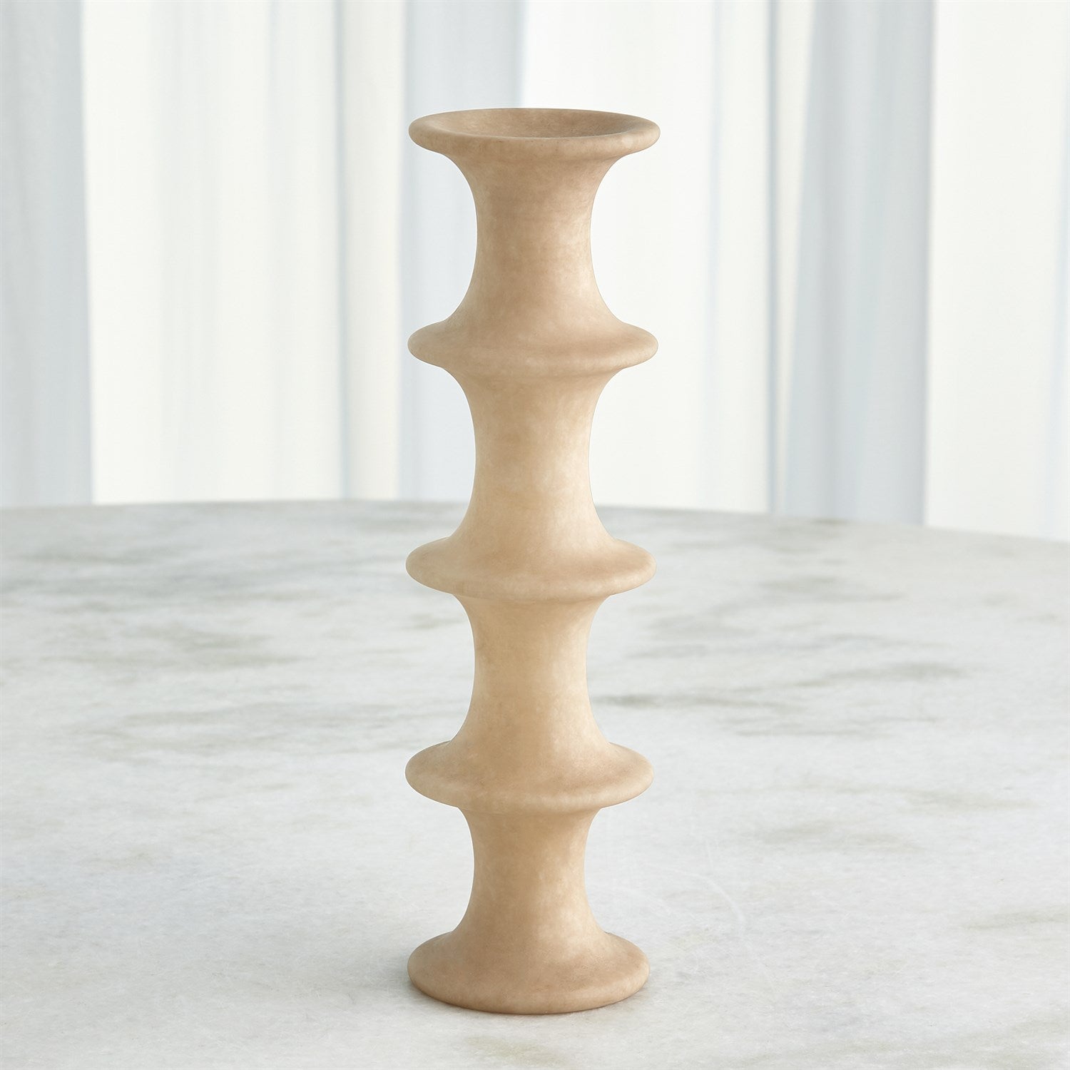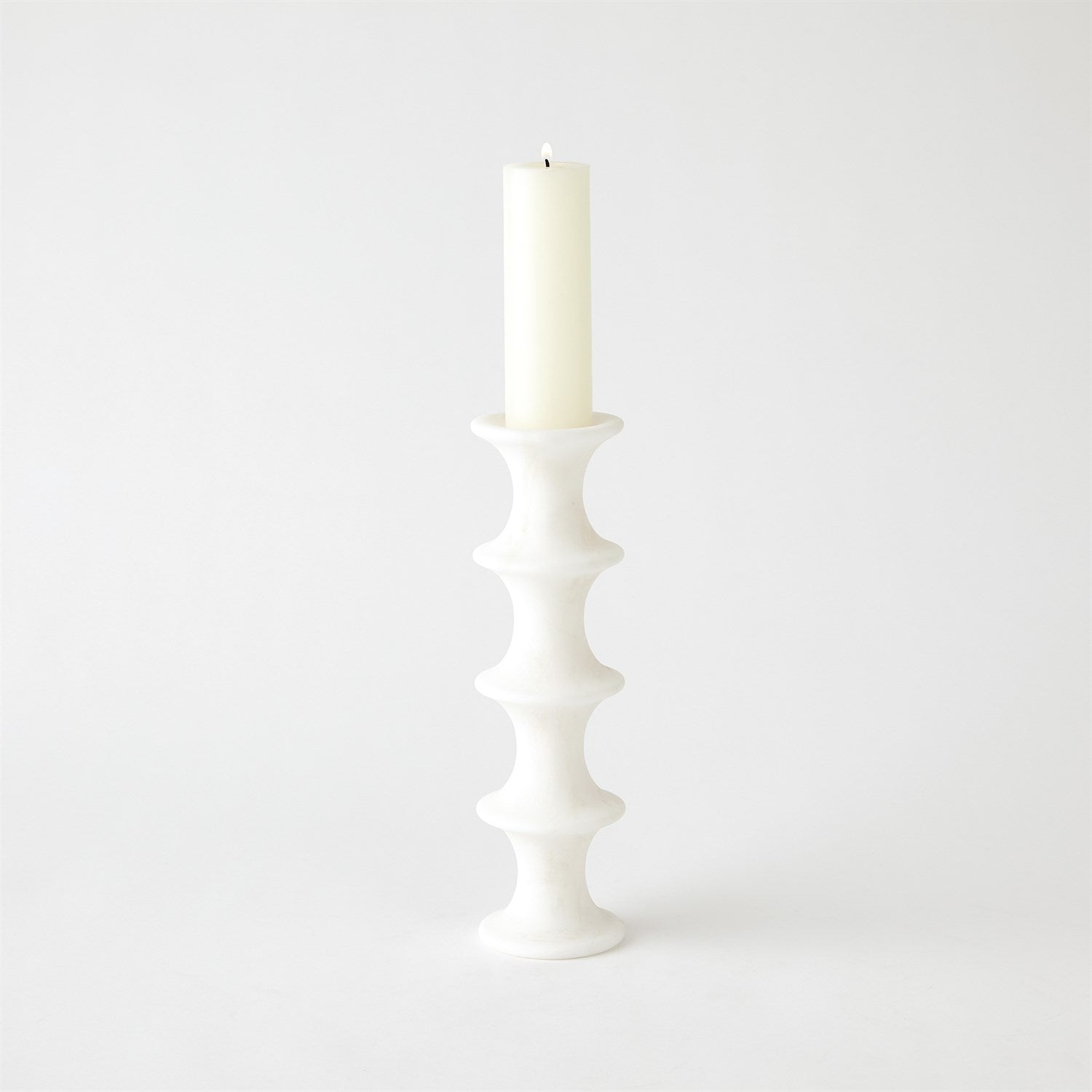 Horizontal fluting compliments the solid alabaster of our Ridge Candlesticks. Designed to hold a tapper or pillar candle, these are beautiful as a stand-alone accent or displayed in a group. As alabaster is a natural product, please be aware that there will always be variations in veining and color. This is to be expected and makes every alabaster product uniquely your own.