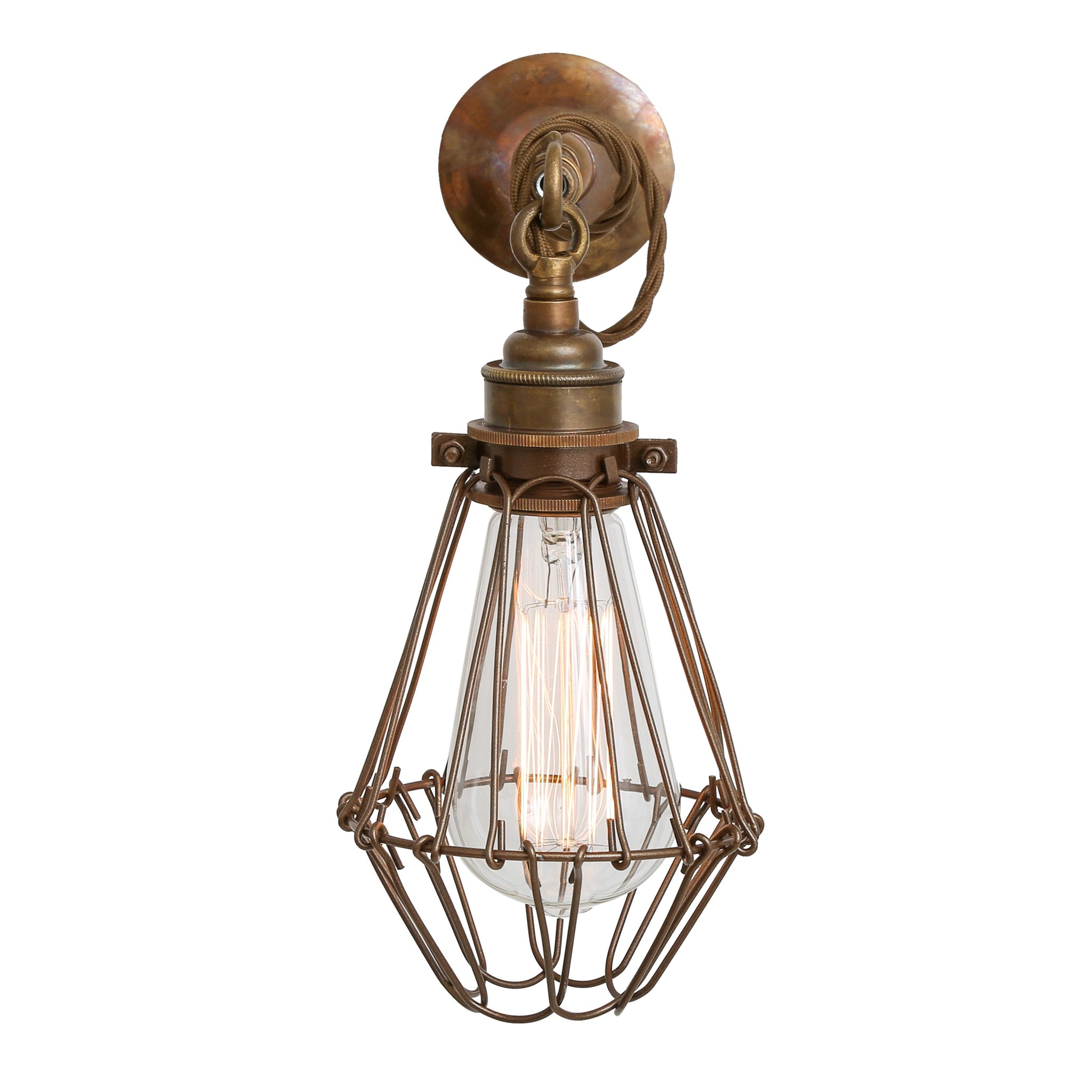 Handmade in brass and steel, the fixture features a precision-welded cage, antique-brass hardware details and exposed lamping that emphasize materiality and texture. Its compact profile and visible braided flex make it ideal for corridors, bedside applications or hospitality projects where character and control matter.