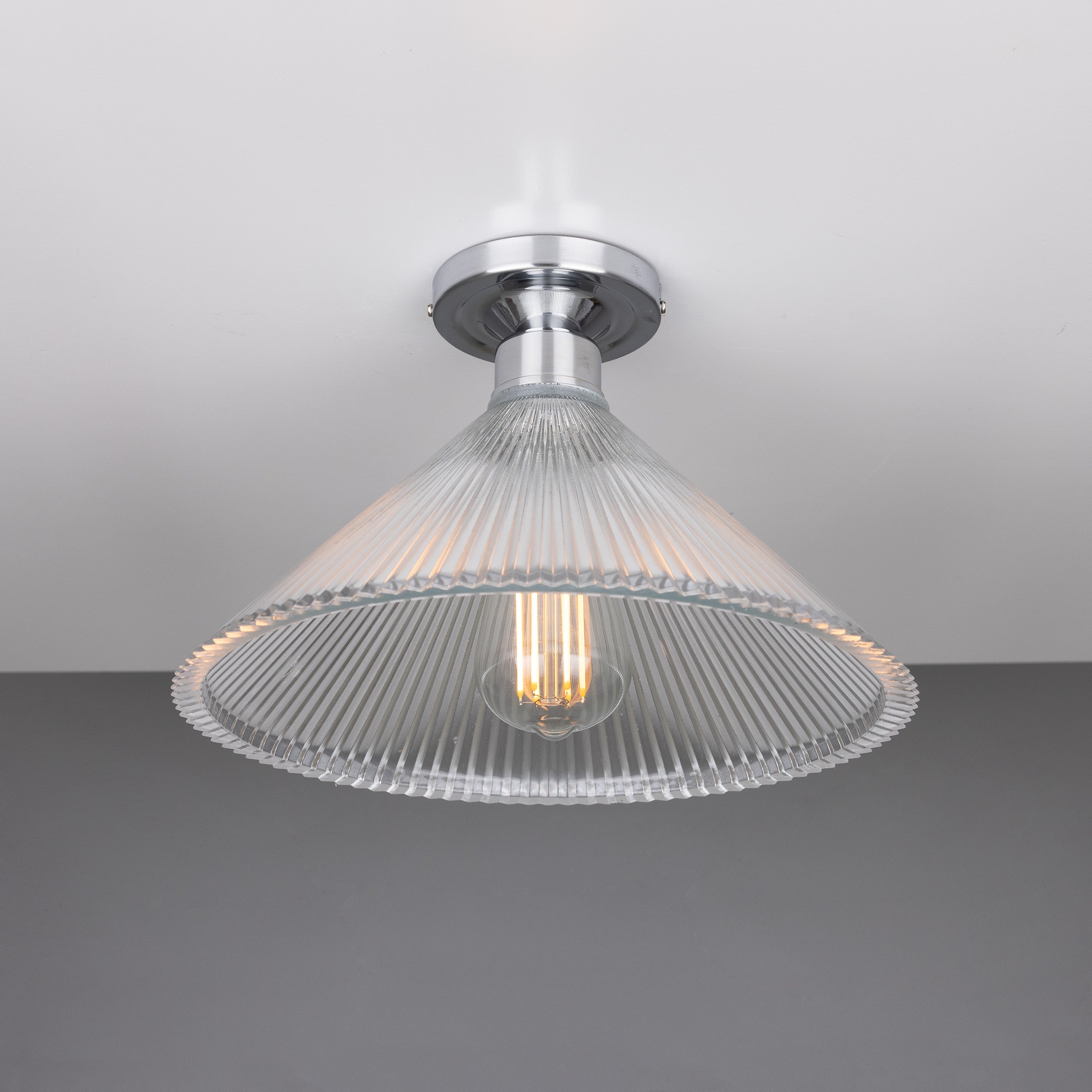 Crafted for designers who value material integrity, the fluted glass lens offers glare control and a distinctive textured glow; the visible-filament aesthetic pairs naturally with modern, minimalist, transitional, and loft interiors. Thoughtful construction ensures stable ceiling mounting and compatibility with LED or vintage-style bulbs for tailored warmth and efficiency.