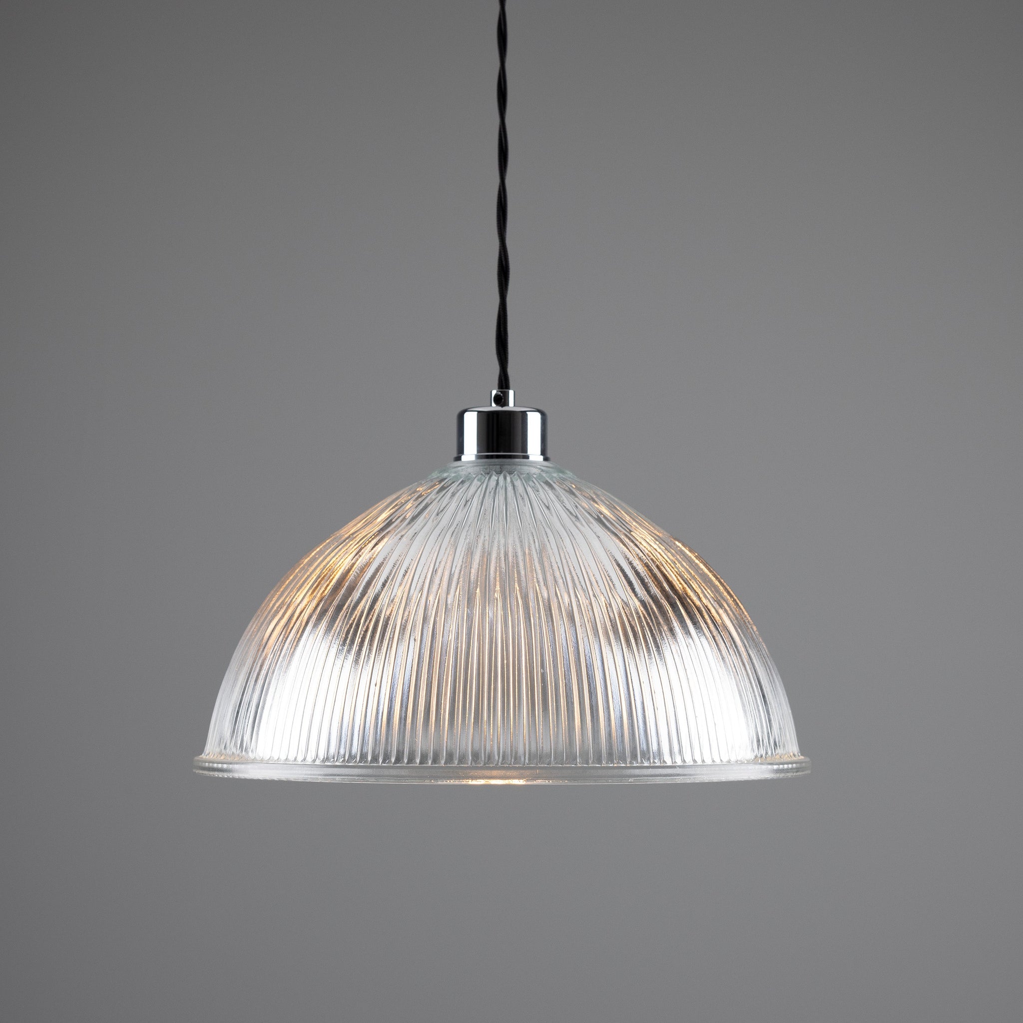 Nova Pendant is a refined designer lighting solution from Mullan Lighting, conceived to deliver a clear, modern statement through form and texture. The prismatic Holophane glass shade refracts light into a soft, even wash while its fluted profile provides crisp visual rhythm—ideal for pendant lighting above kitchen islands, hallways, or dining runs.