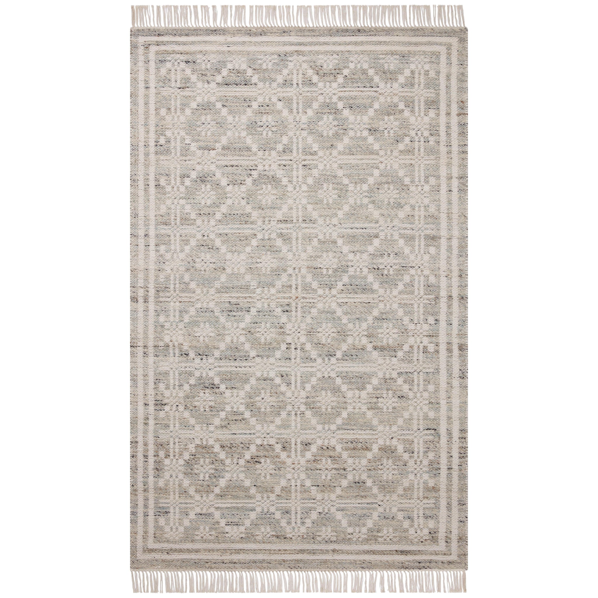 Rivers Riv 02 Lagoon Ivory area rug from the exclusive Rivers Collection by Angela Rose x Loloi. This contemporary flatweave rug boasts a reversible design adorned with symmetrical motifs for a modern touch. Crafted from a blend of wool, cotton, and jute, Rivers seamlessly merges natural materials to achieve an airy and organic look.