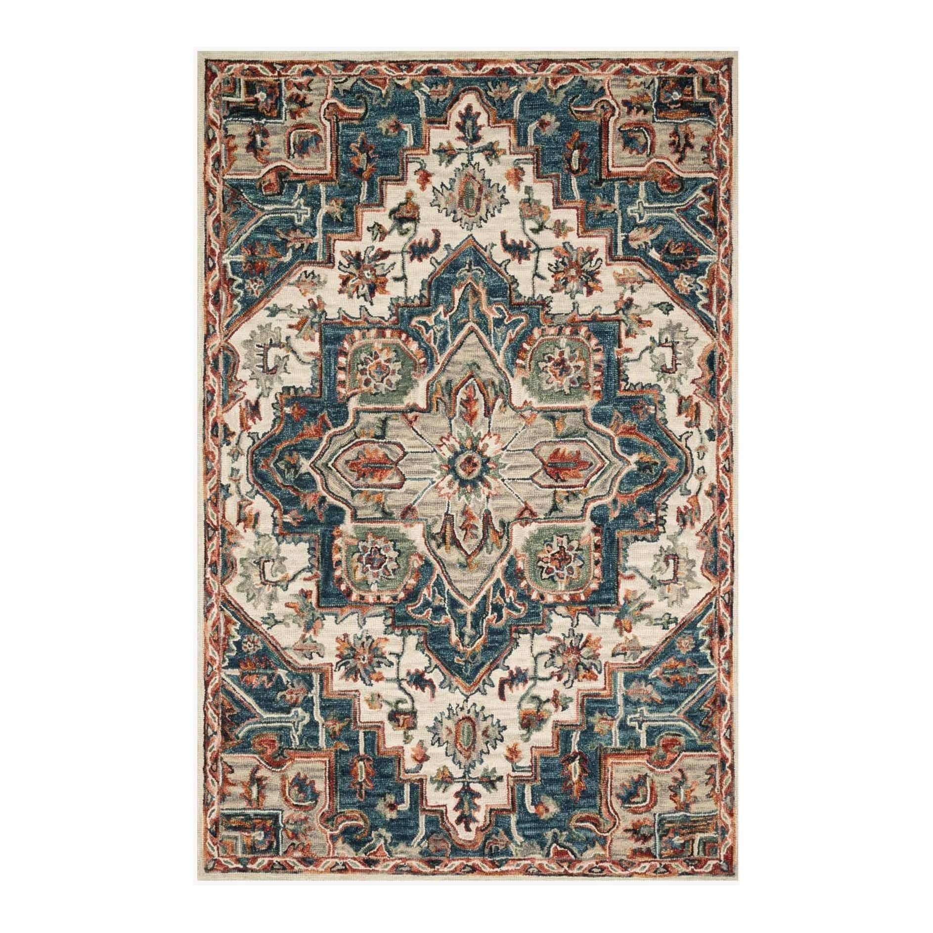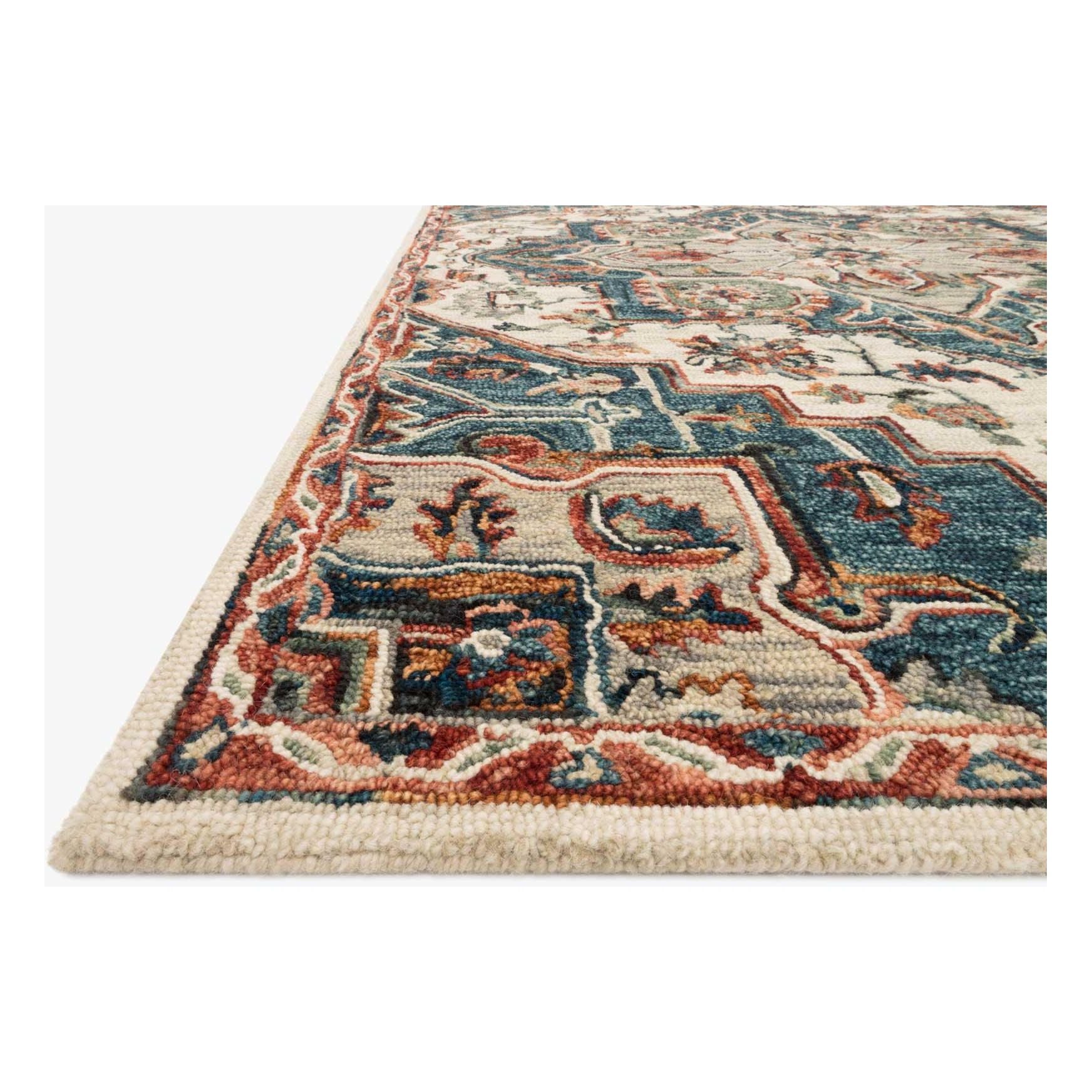 stunning Victoria Vk 16 Blue Red rug from the exquisite Victoria Collection. This collection seamlessly blends traditional patterns, textures, and soft hues to bring a touch of timeless elegance to modern homes. Crafted from 100% wool with fine hooking, each Victoria design boasts a unique looped texture that adds depth and character.
