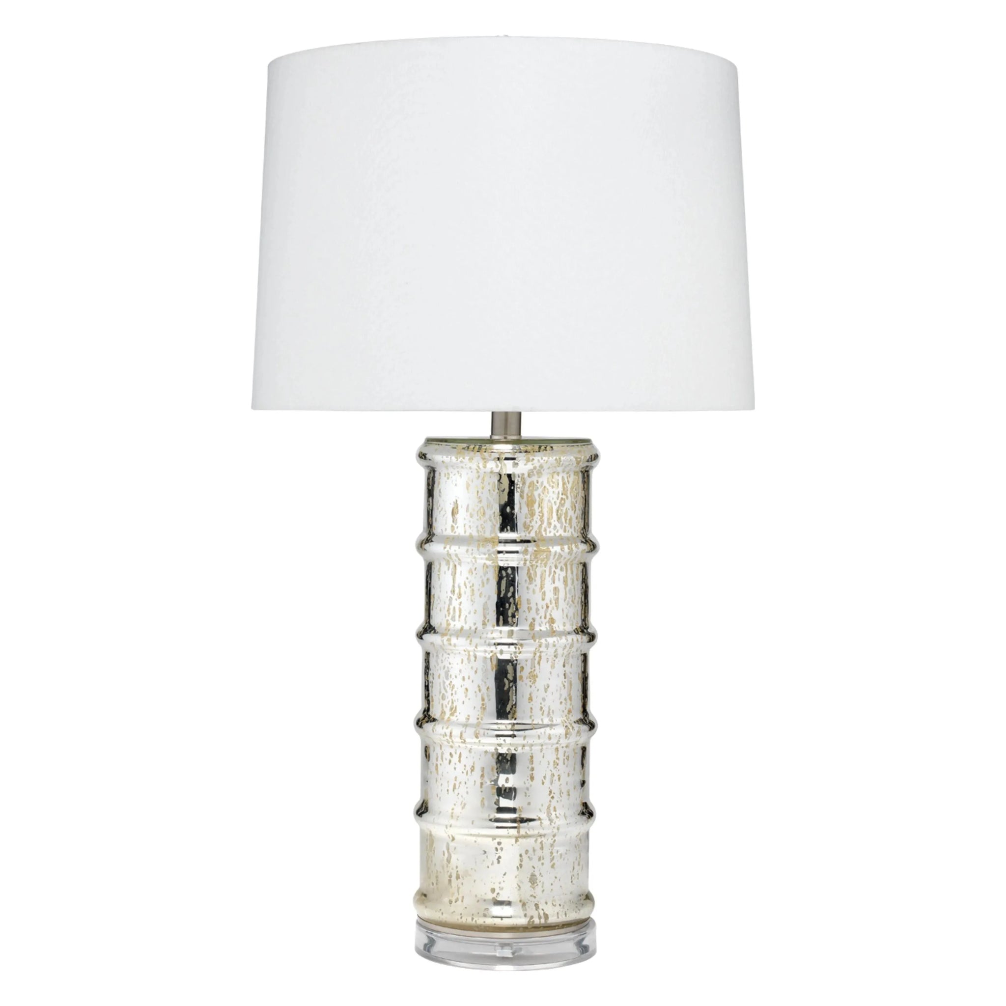 Add a touch of glamour to any room with this accent lamp. Its traditional banded column is made of mercury glass that draws the eye and reflects light around the room and the clear acrylic base gives it an elevated presentation. Topped with a linen shade, this table lamp will be the main focus in your home.