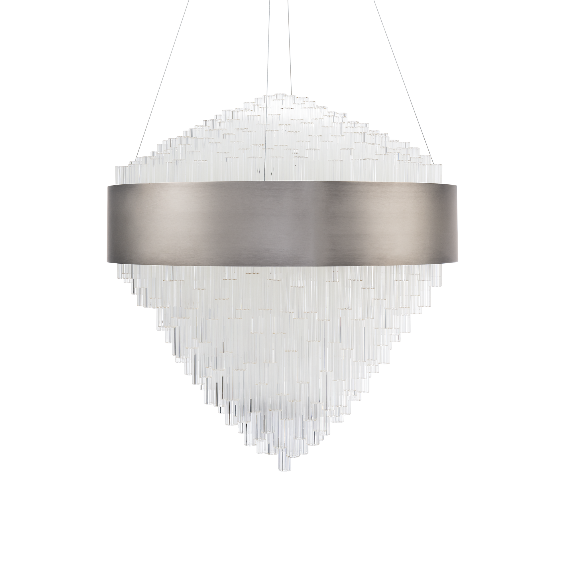 Dramatically proportioned. Bundles of fluted glass cylinders are nested together creating a striking prismatic effect. A gleaming inner plate creates a mirrored effect, elegantly enhancing the delicate crystalline elements.