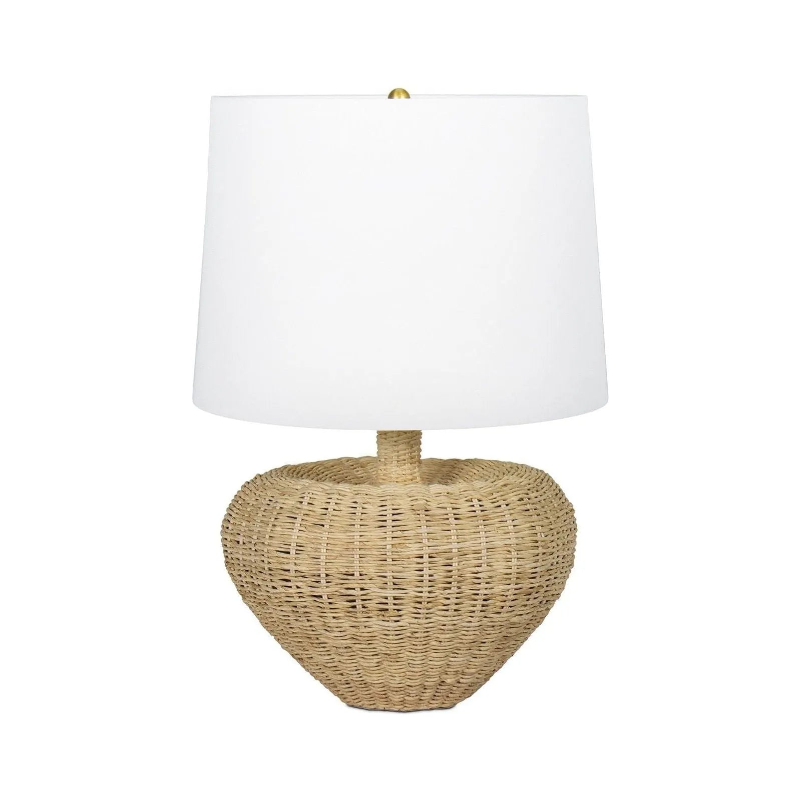 Illuminate your space with the Avery Lamp, showcasing a base with soft, heart-like curves and a sleek, elongated neck that supports a crisp white shade. Its intricately woven rattan body adds natural texture and warmth, making it ideal for coastal homes or any room in need of a sophisticated, neutral touch. The Avery Lamp blends artistry and elegance, offering a refined addition to your decor.
