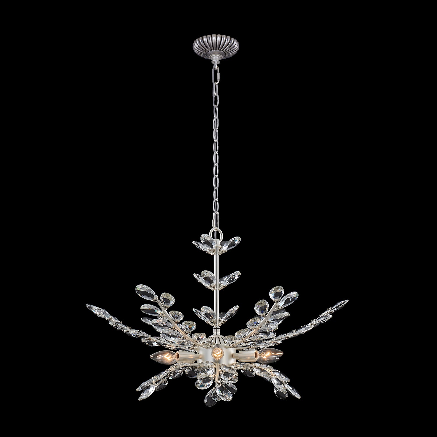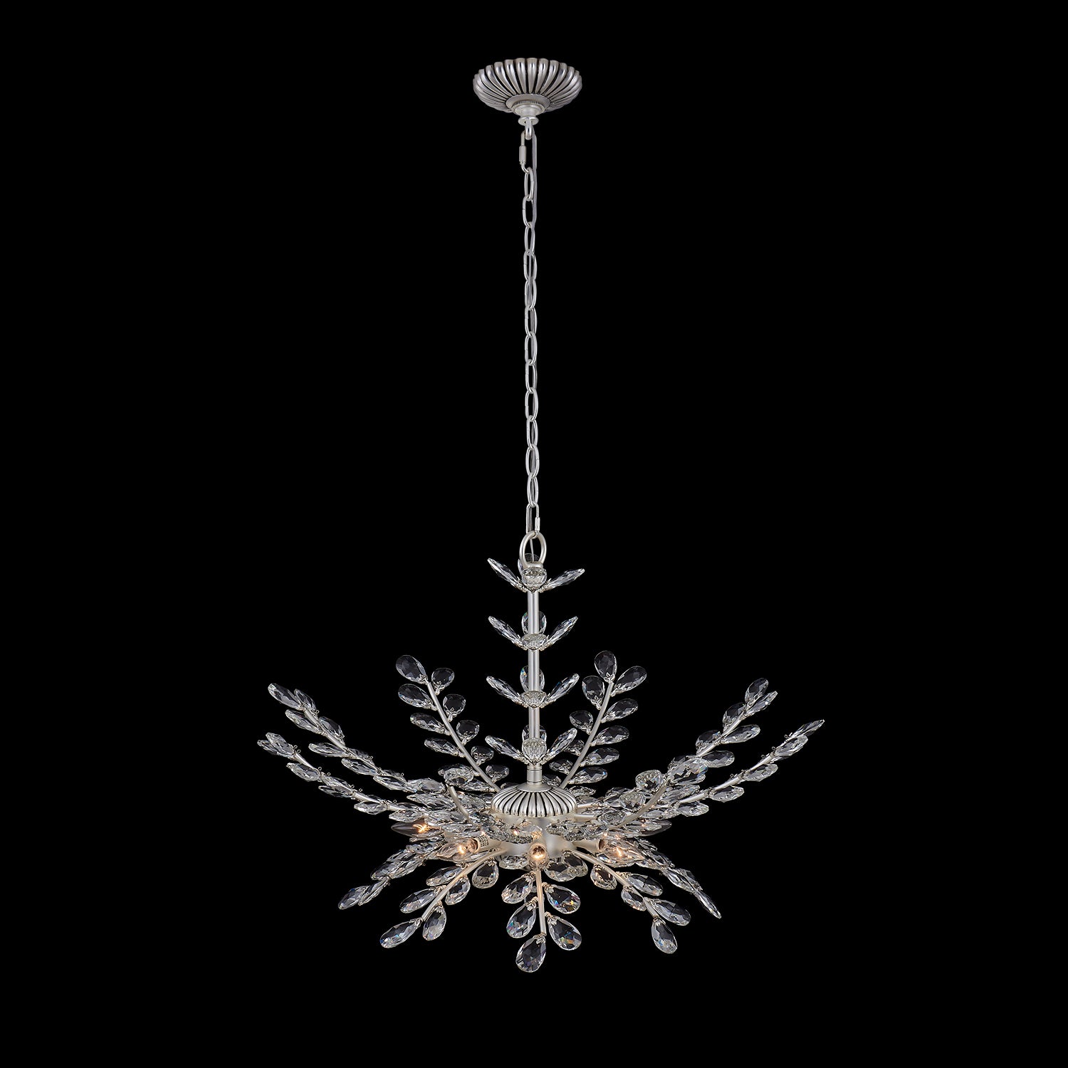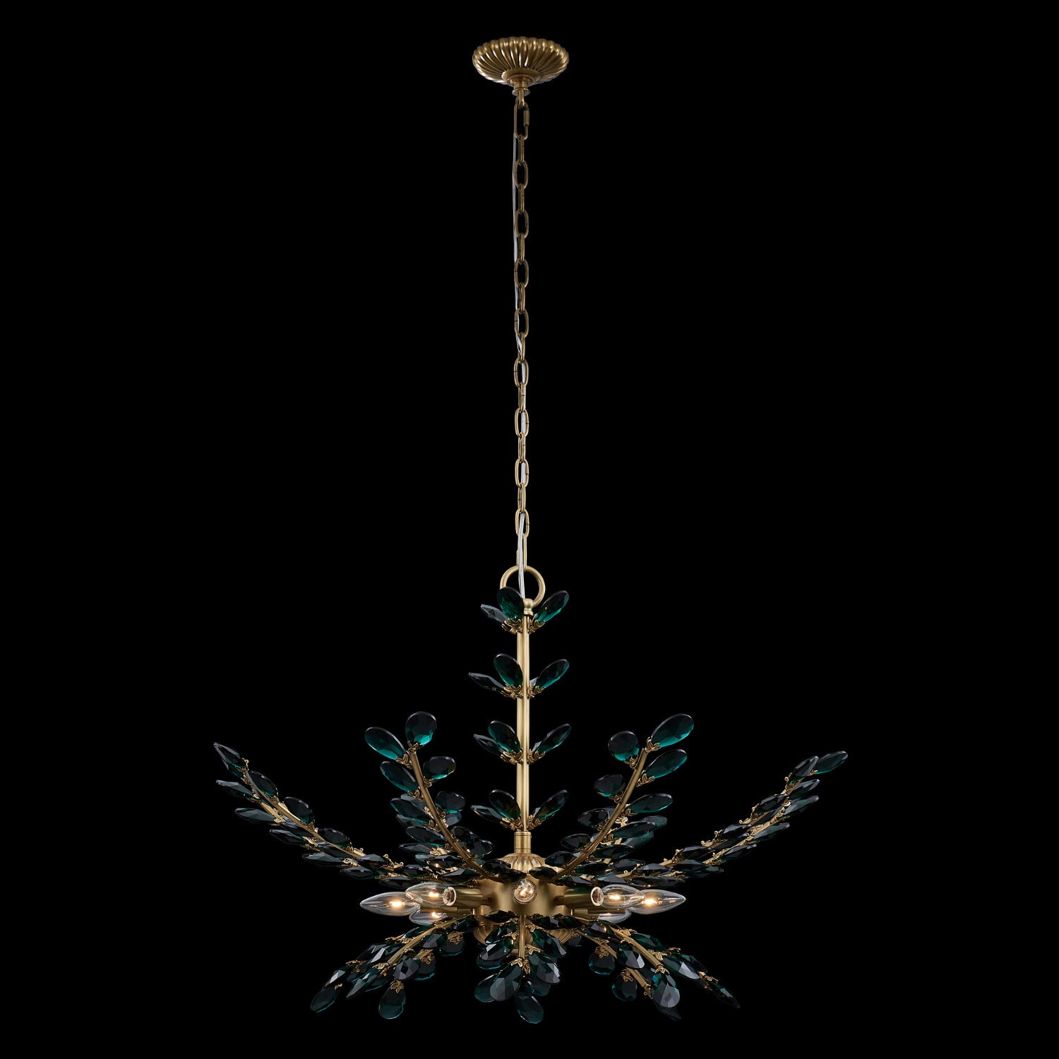 The Alloro Pendant draws inspiration from the natural world, blending botanical elegance with refined craftsmanship. This sophisticated fixture features delicate crystalline elements available in pristine Clear or rich Emerald Firenze varieties, each paired with complementary metalwork. Select between Pewter paired with Clear Crystals for a luminous, understated aesthetic, or True Brass with Emerald Crystals for a warmer, more dramatic presence. The graceful silhouette and ornamental detailing create an understated focal point that elevates residential interiors with timeless style and subtle glamour.