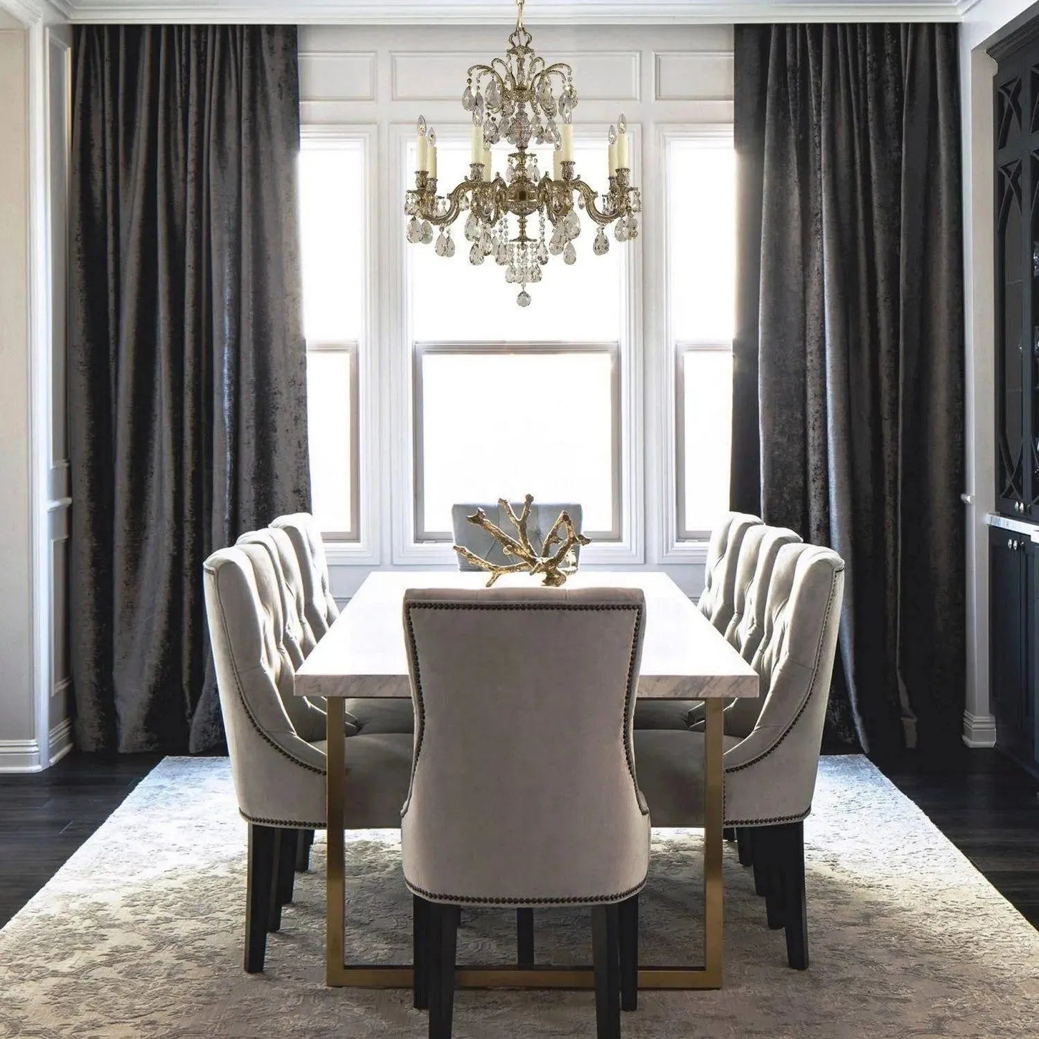 Marlena Brass and Golden Colored Crystal Chandelier from American Brass & Crystal balances classic form with contemporary presence — a curated centerpiece for luxury décor and designer lighting projects. Meticulously cast brass arms and precision-cut golden crystals create layered refraction that reads both refined and dramatic in residential or hospitality settings.