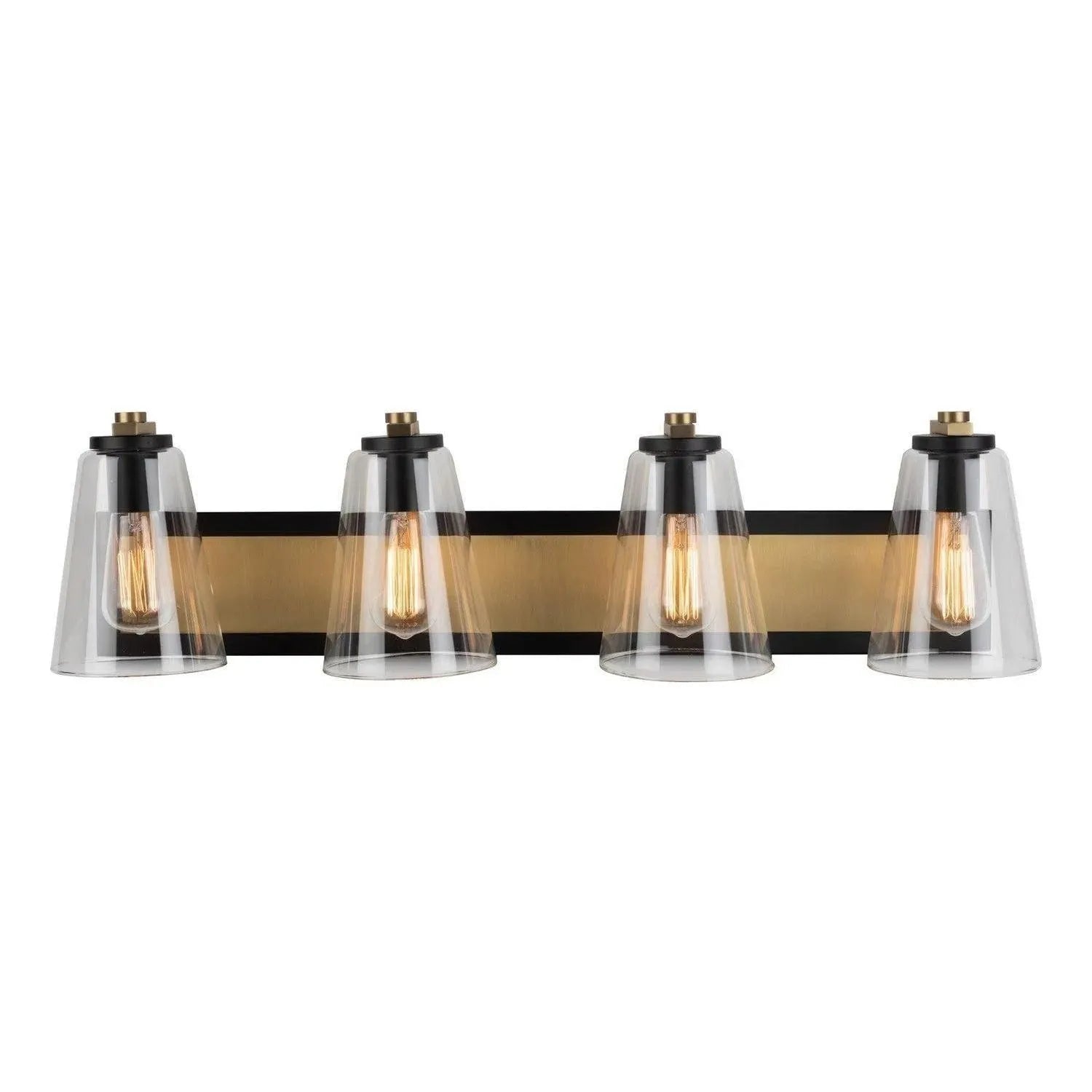 Treviso Vanity by Artcraft Lighting blends architectural clarity with warm materiality — a four-light vanity that balances a slim, rectilinear backplate with tapered clear glass shades for precise, flattering illumination. It’s designed to read as a crafted fixture in contemporary and transitional bathrooms, dressing rooms, or hospitality settings.