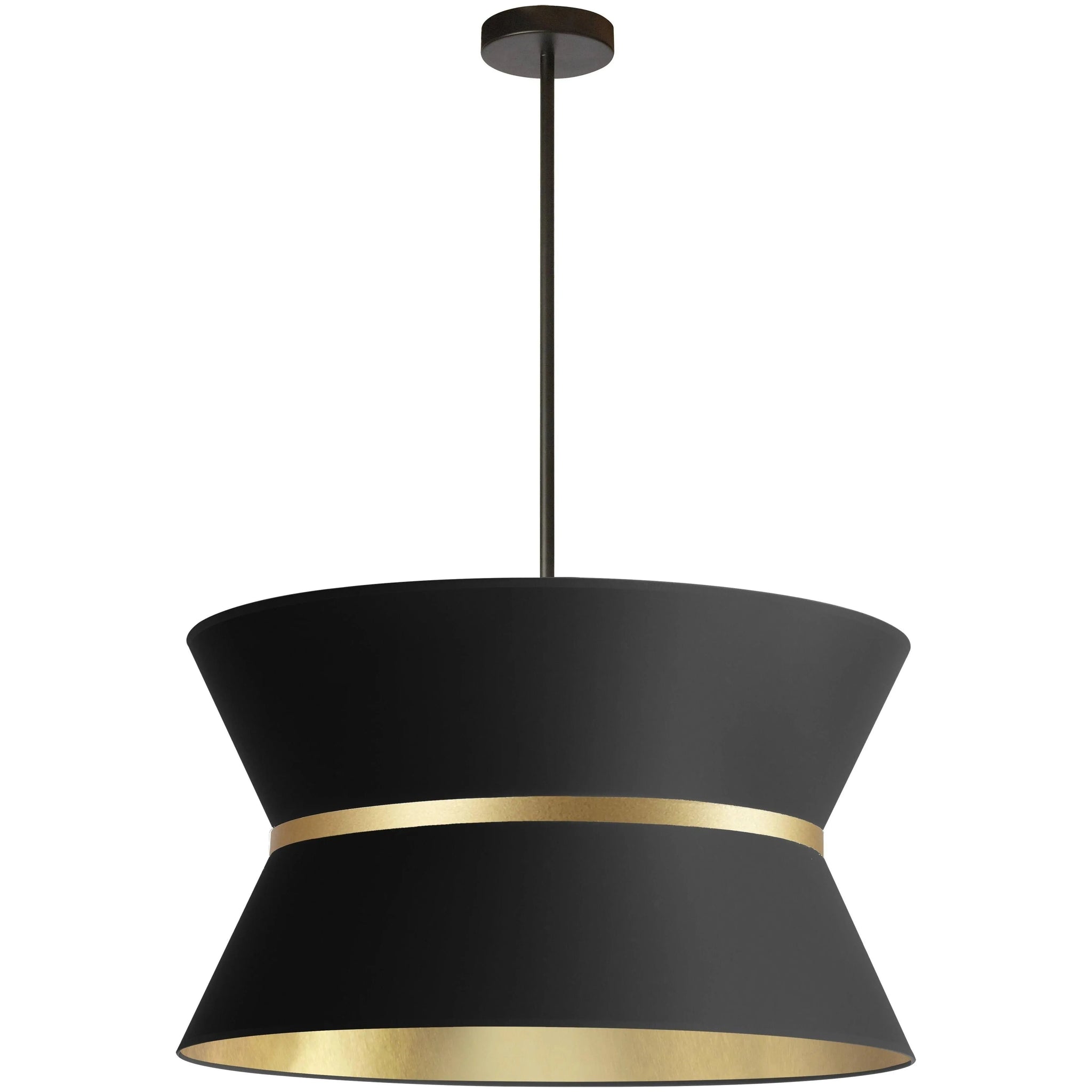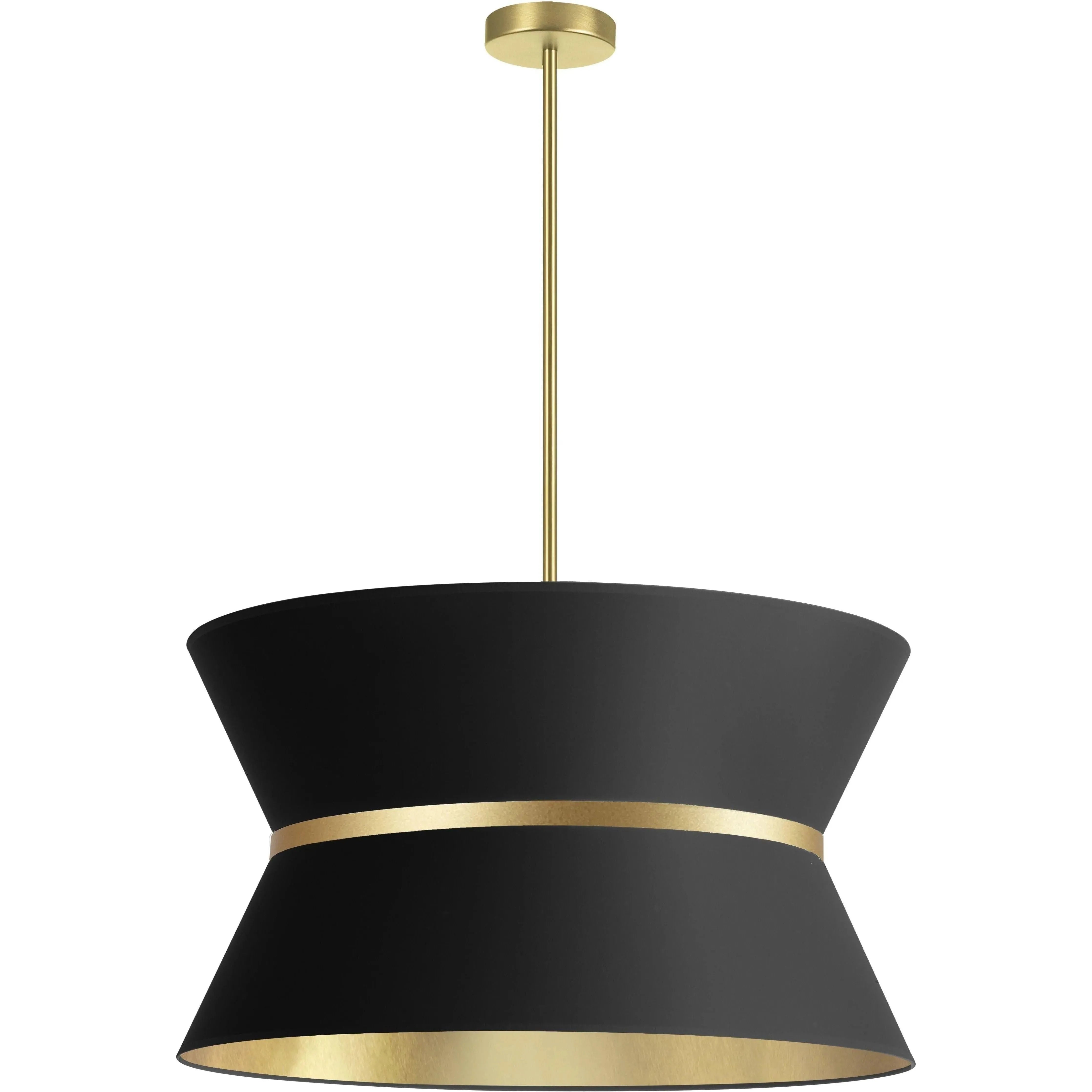 Designed for refined interiors, the Dainolite Caterine Chandelier balances sculptural form with a quiet, luxurious finish. Its flared, hourglass silhouette creates a striking ceiling presence while the white outer shade and gold‑leaf inner lining deliver warm, directional glow ideal for dining or entry spaces.