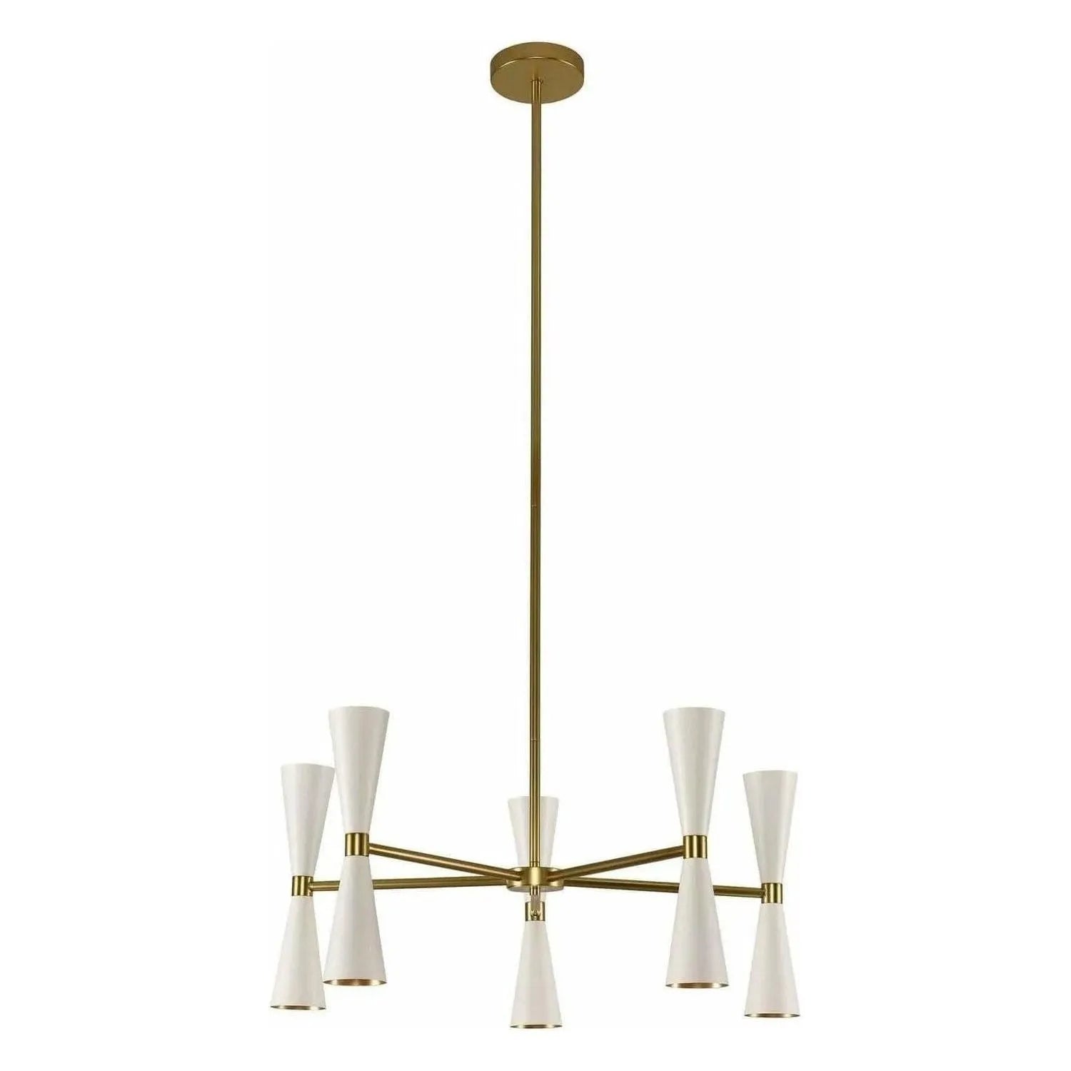 Trendy Mid-Century inspired design with dual LED lamping for maximum efficiency. The MILO Collection features a variety of configurations to fit every space, from sconce and entry to dining. Introduced in June of 2016 in a sleek Matte Black with Vintage Brass accents, Kalco has added a Warm White finish, also featuring vintage brass accents.
