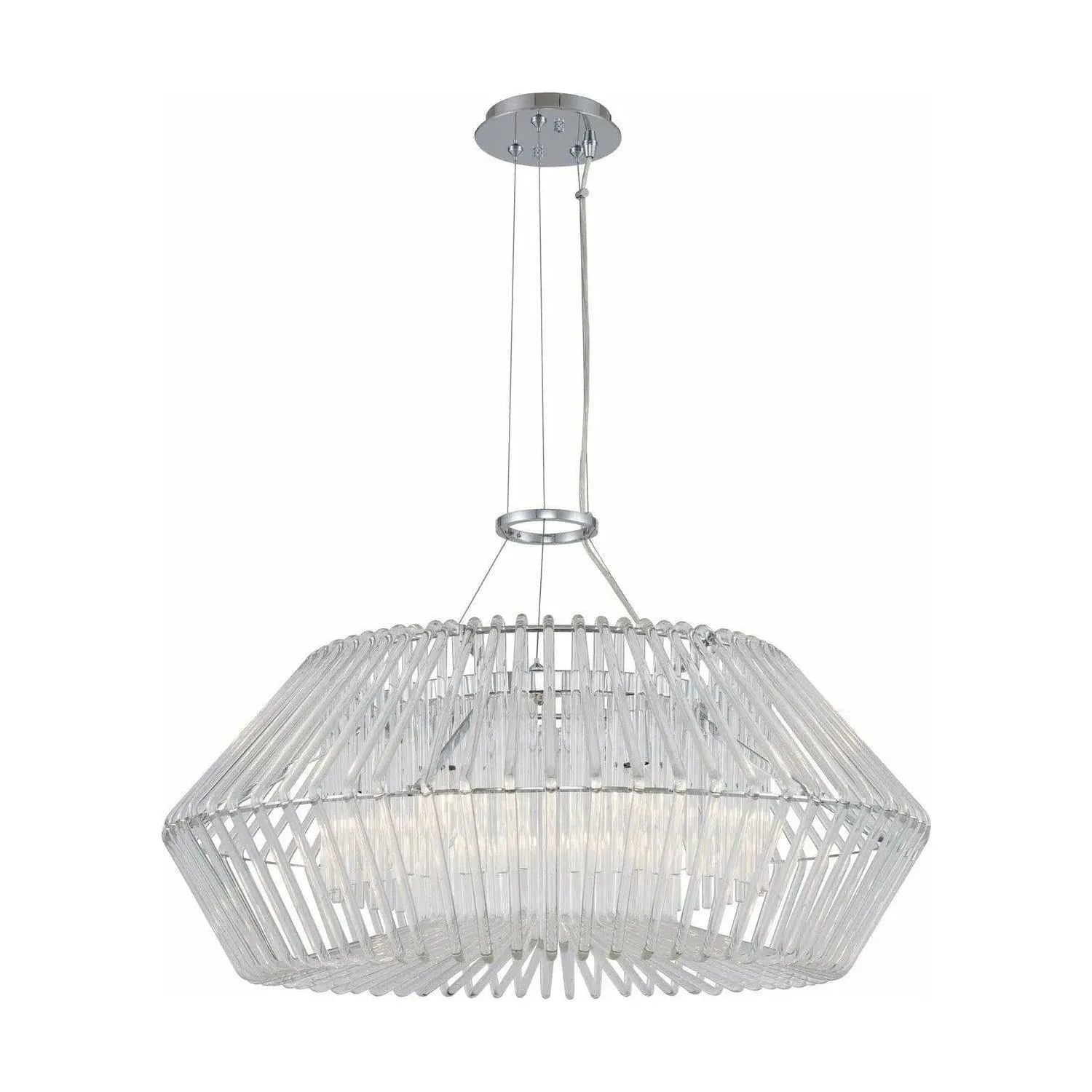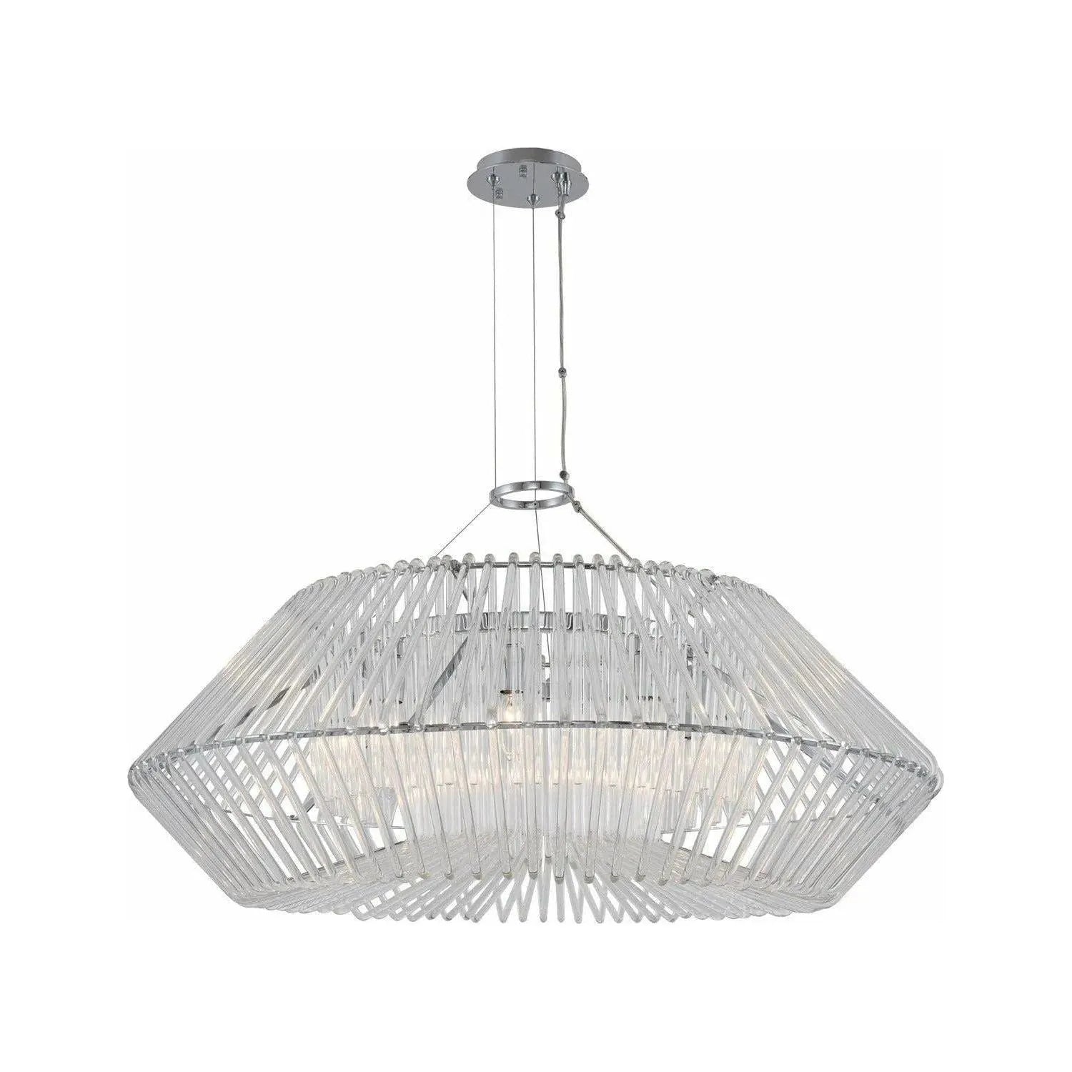 Carefully crafted solid glass rods create a masterful array of light and movement with a Polished Chrome frame.