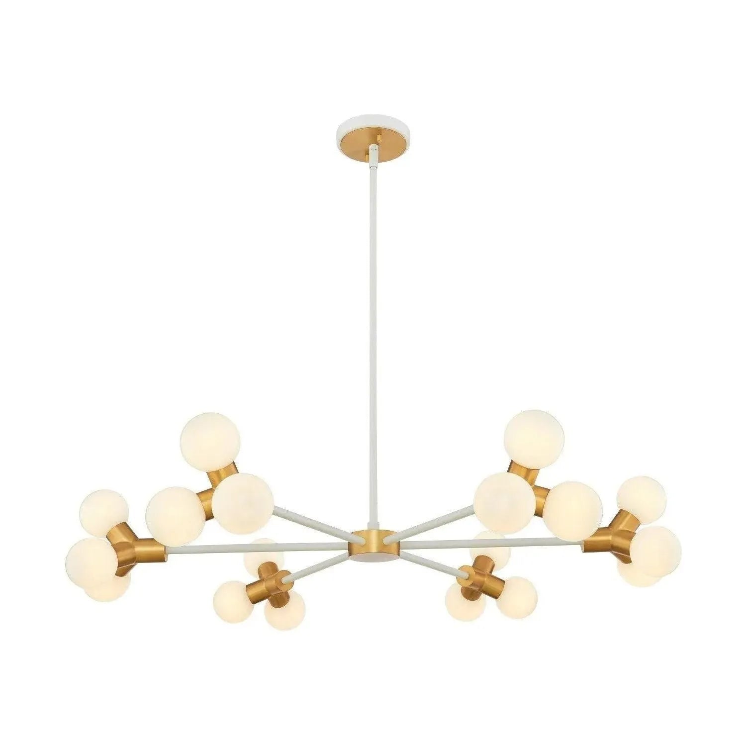 The Tres collection is a Mid Century modern inspired design with a playful twist. Jax like opaque globes sit at the end of each arm striking a perfect balance between ophistication and fun. Available in a trendy White & New Brass (WNB) color combination. G9 LED BULBS INCLUDED