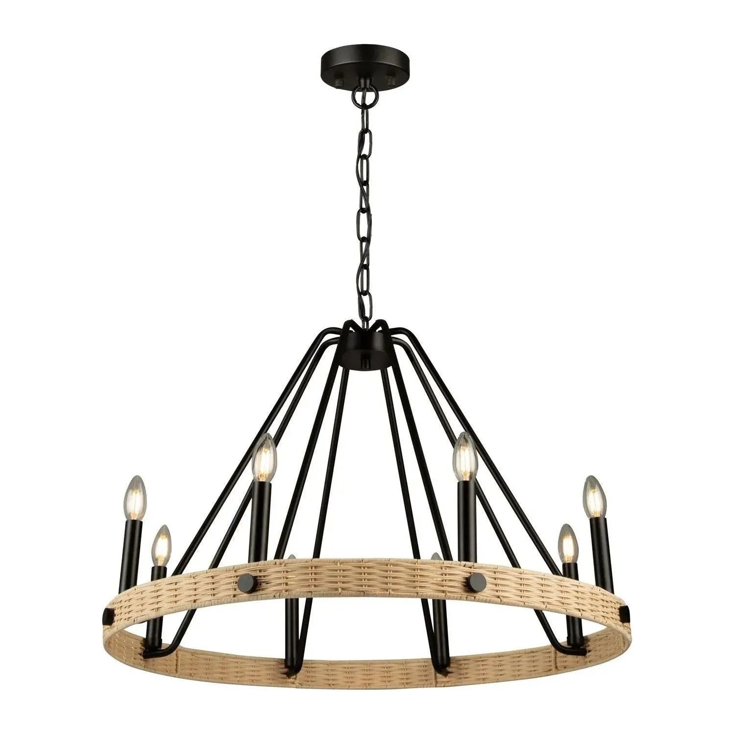 Perris Chandelier by Artcraft Lighting — a refined blend of natural texture and architectural form, designed to bring warmth and structure to contemporary interiors. Handmade rattan shades wrap a crisp black metal frame, creating a balanced focal point that reads both modern and timeless.