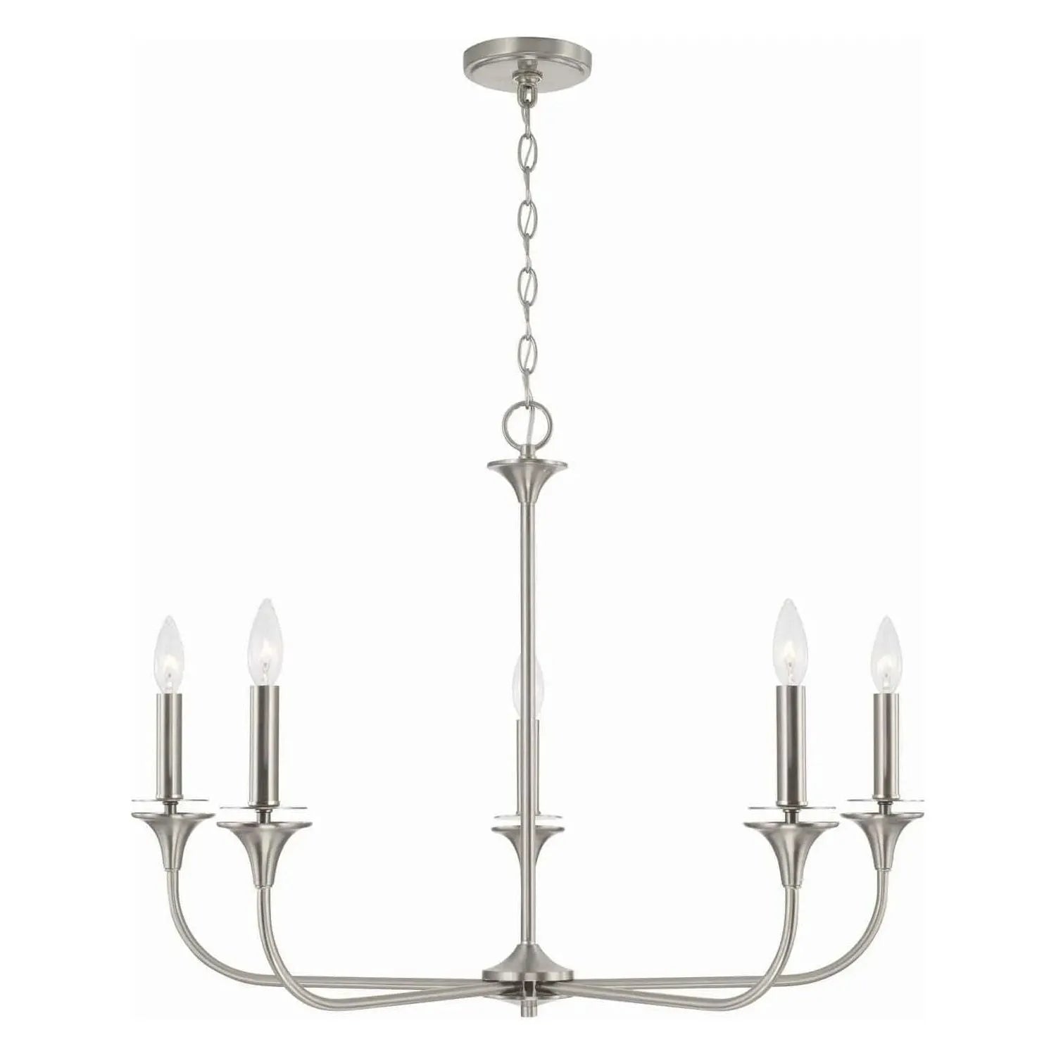 Introducing the Presley 5-Light Chandelier from HomePlace — a statement piece that combines sleek contours with flared accents to elevate any room. The Aged Brass finish lends a timeless, classic vibe that harmonizes with traditional and contemporary styles alike.