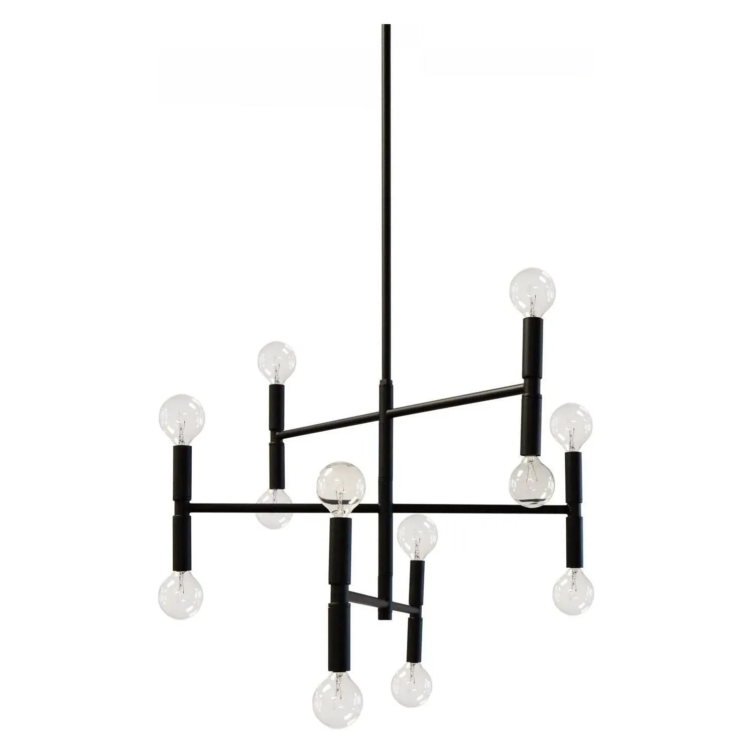 Purposeful geometry meets refined minimalism. The Ava Chandelier by Dainolite is a study in sculptural restraint—matte black metal arms and cylindrical sockets arranged in an asymmetrical grid that reads modern, architectural and decidedly intentional.