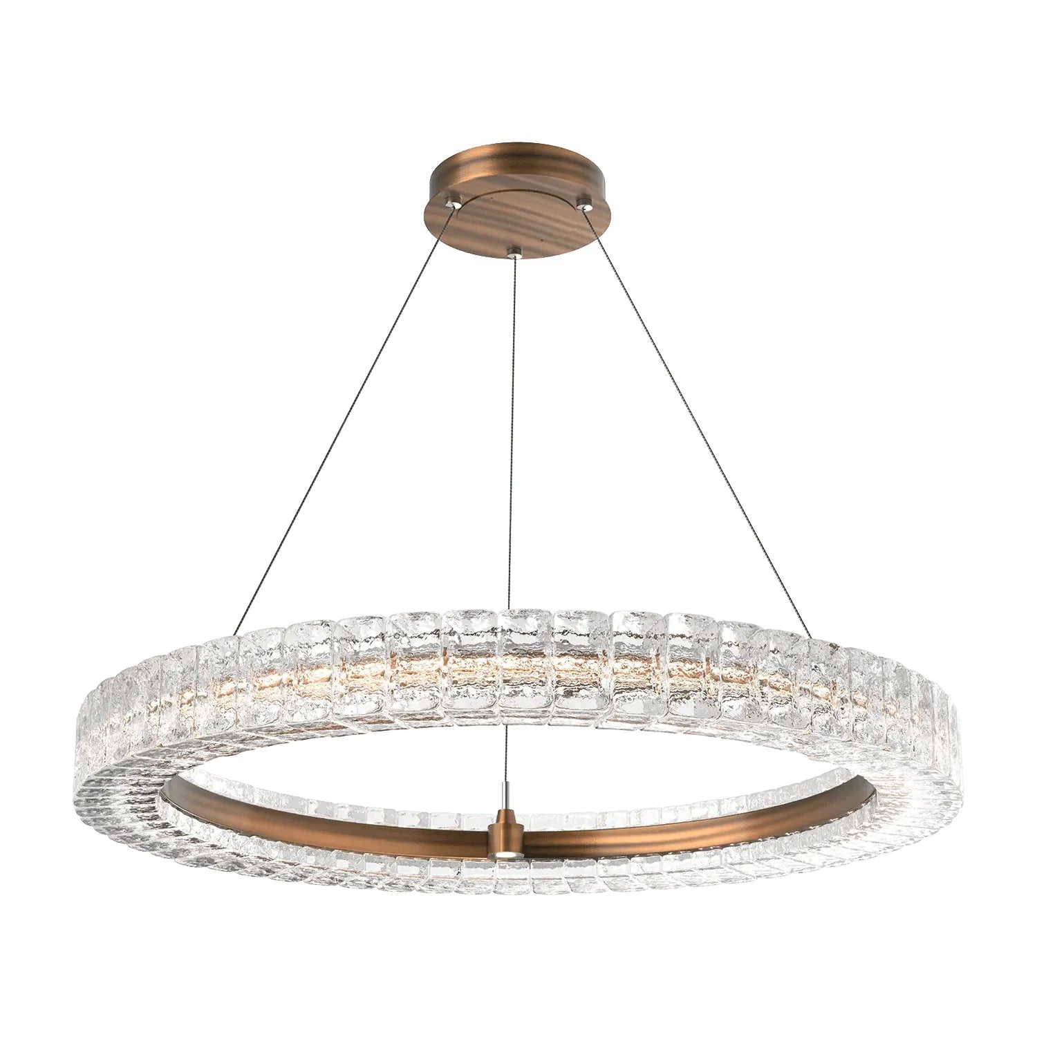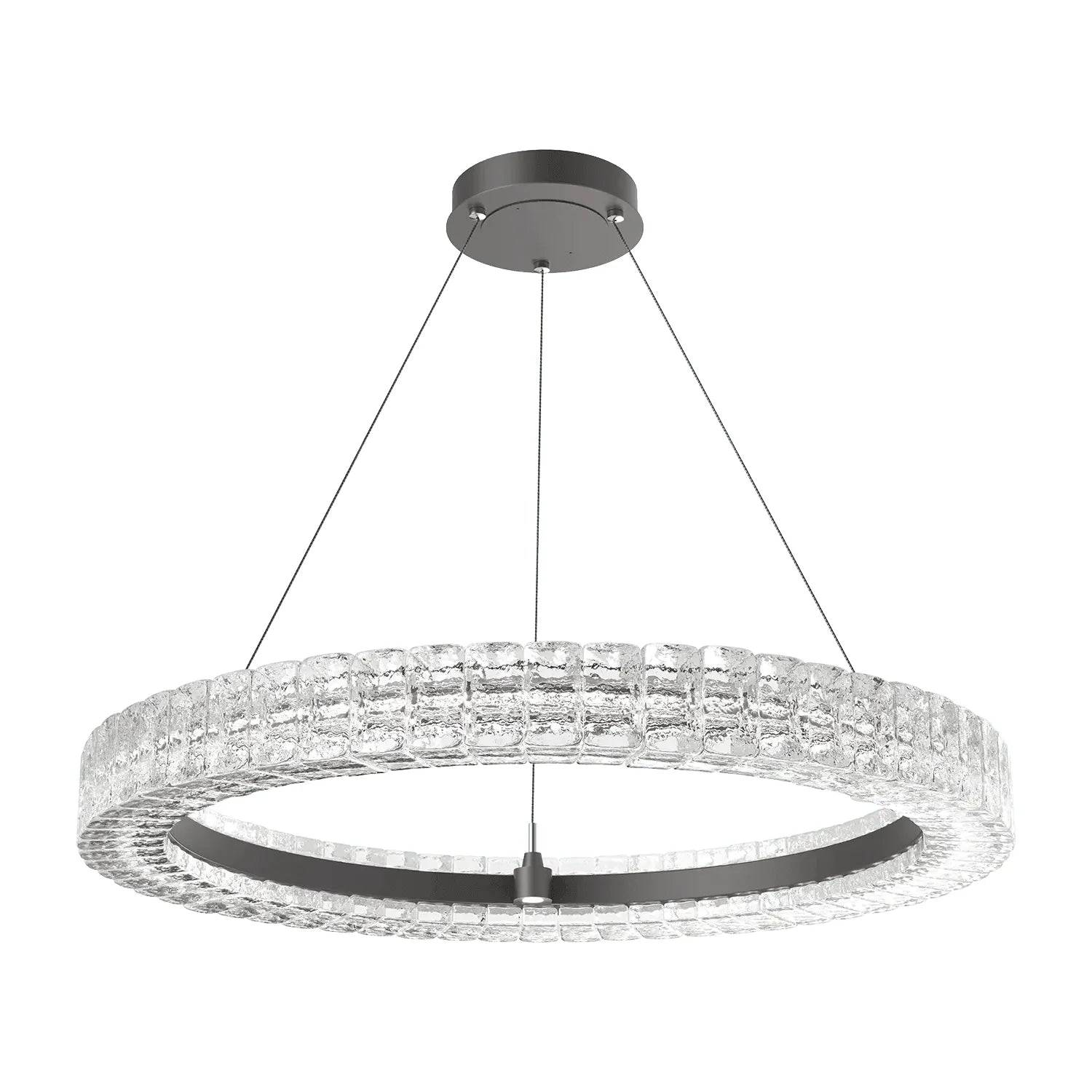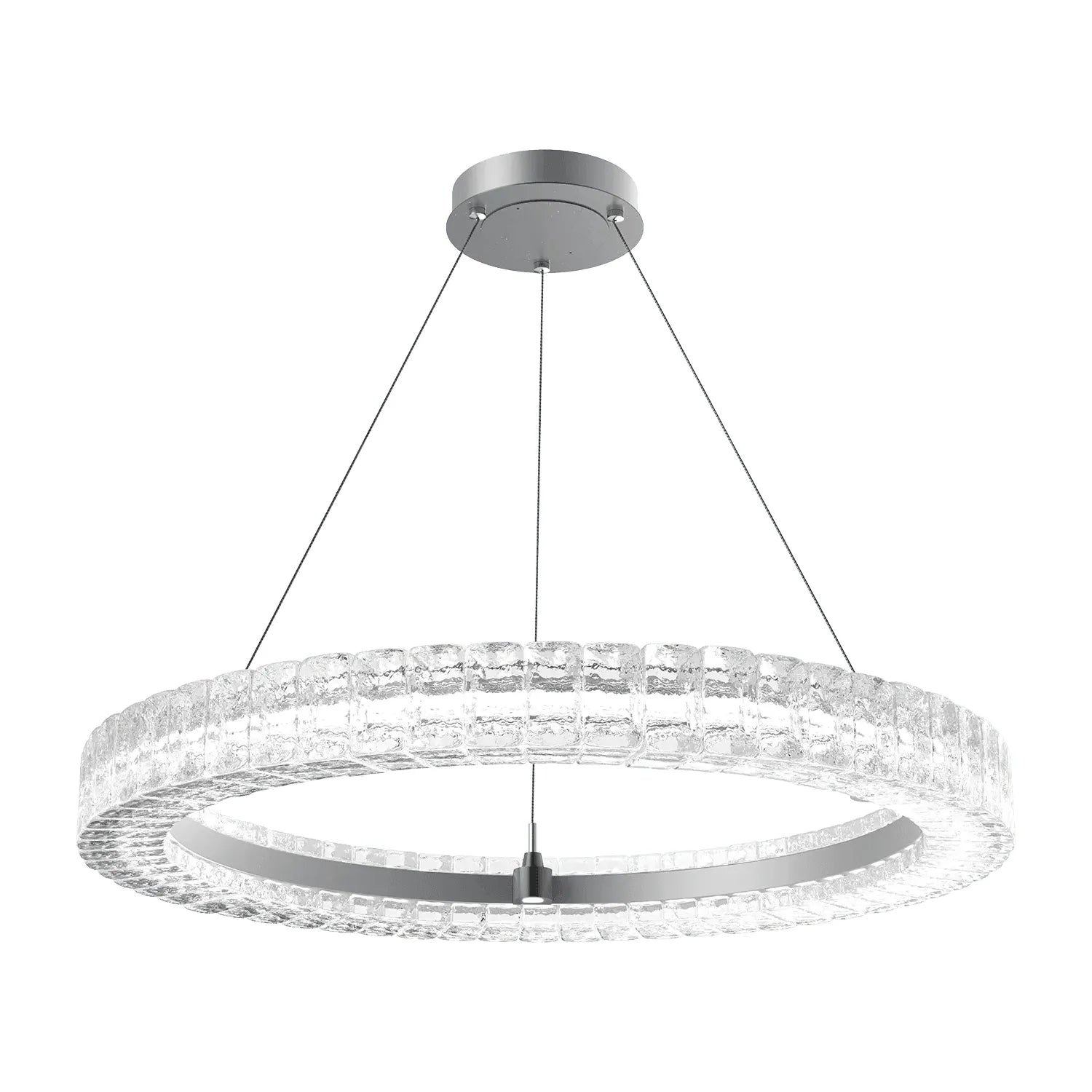 Reminiscent of a classic diamond tennis bracelet, this 36” diameter ceiling fixture adds a touch of modern elegance to any space. 3,000K integrated LED light refracting through clear hand-cast glass creates beautiful ambient light, while cleverly concealed down lights provide additional task lighting.