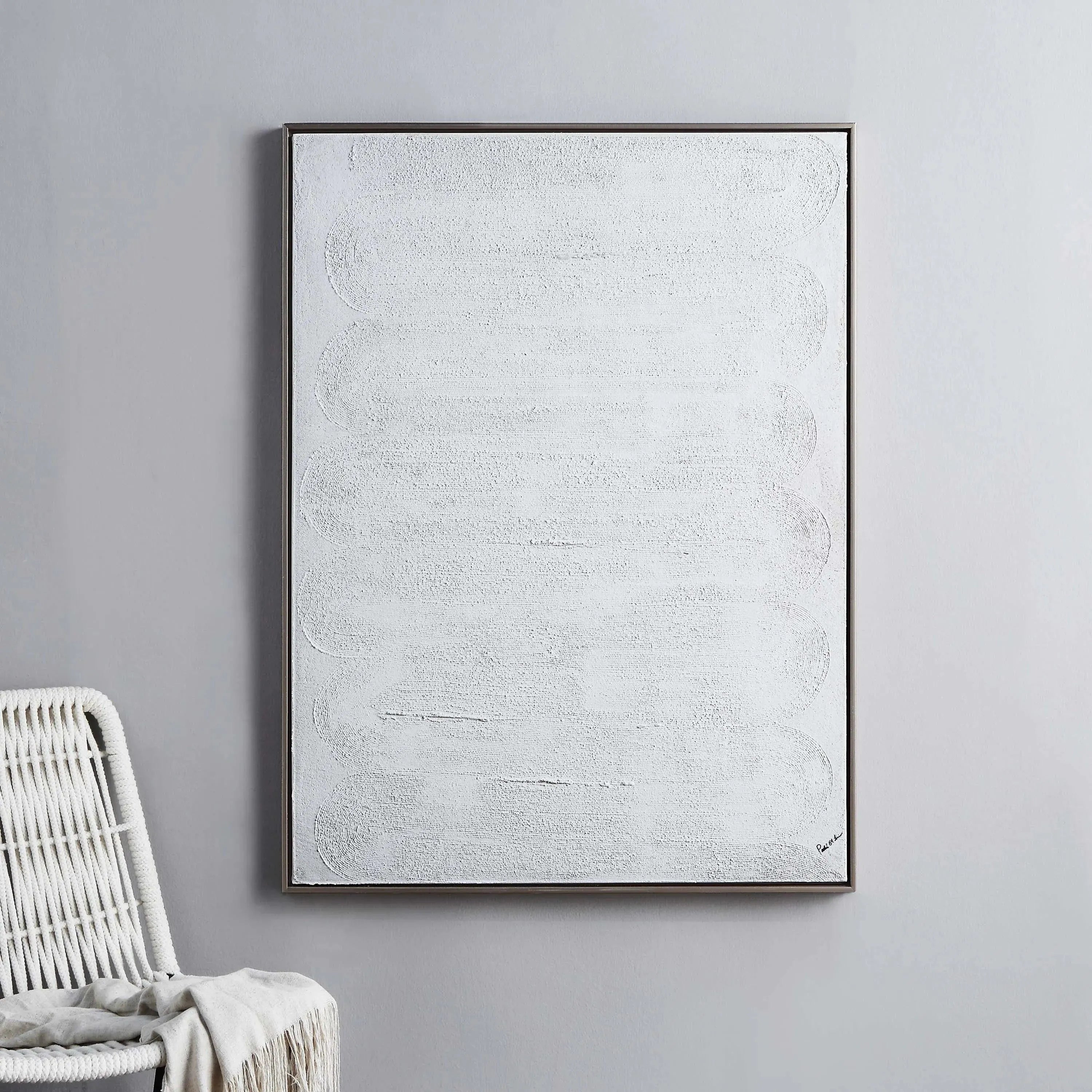 The effortlessly chic quality of a textured white work of art envelops the home or business when this piece enters the room. This framed canvas provides clients with endless options for interior styling, as they can pair it with both ornate decor and minimal furnishings. The simplicity of the art painting and its frame makes it well suited for modern spaces.