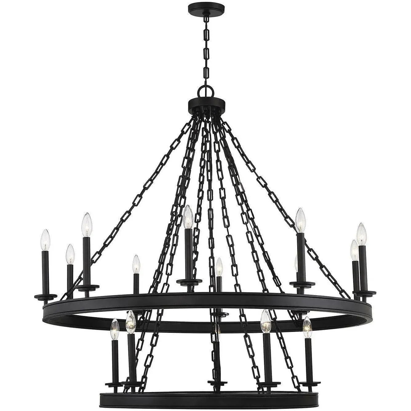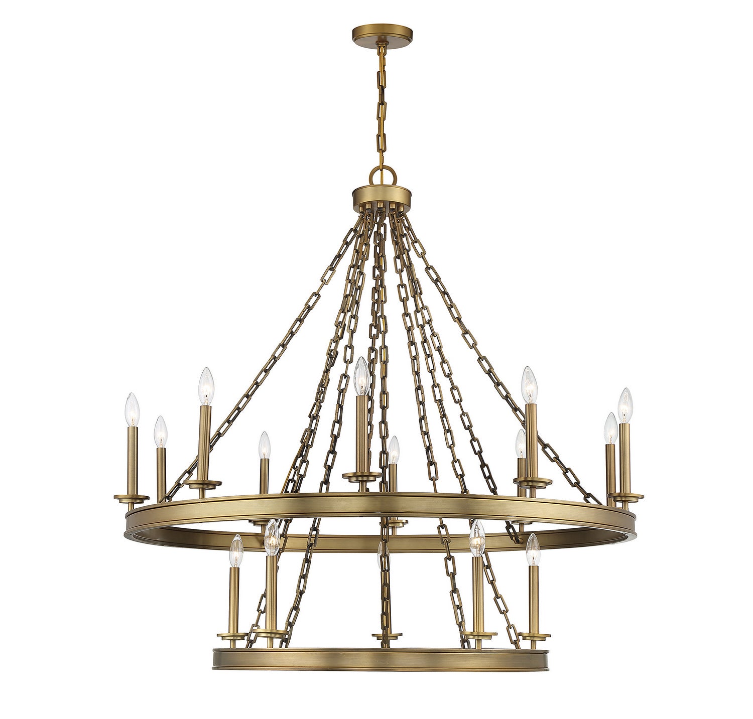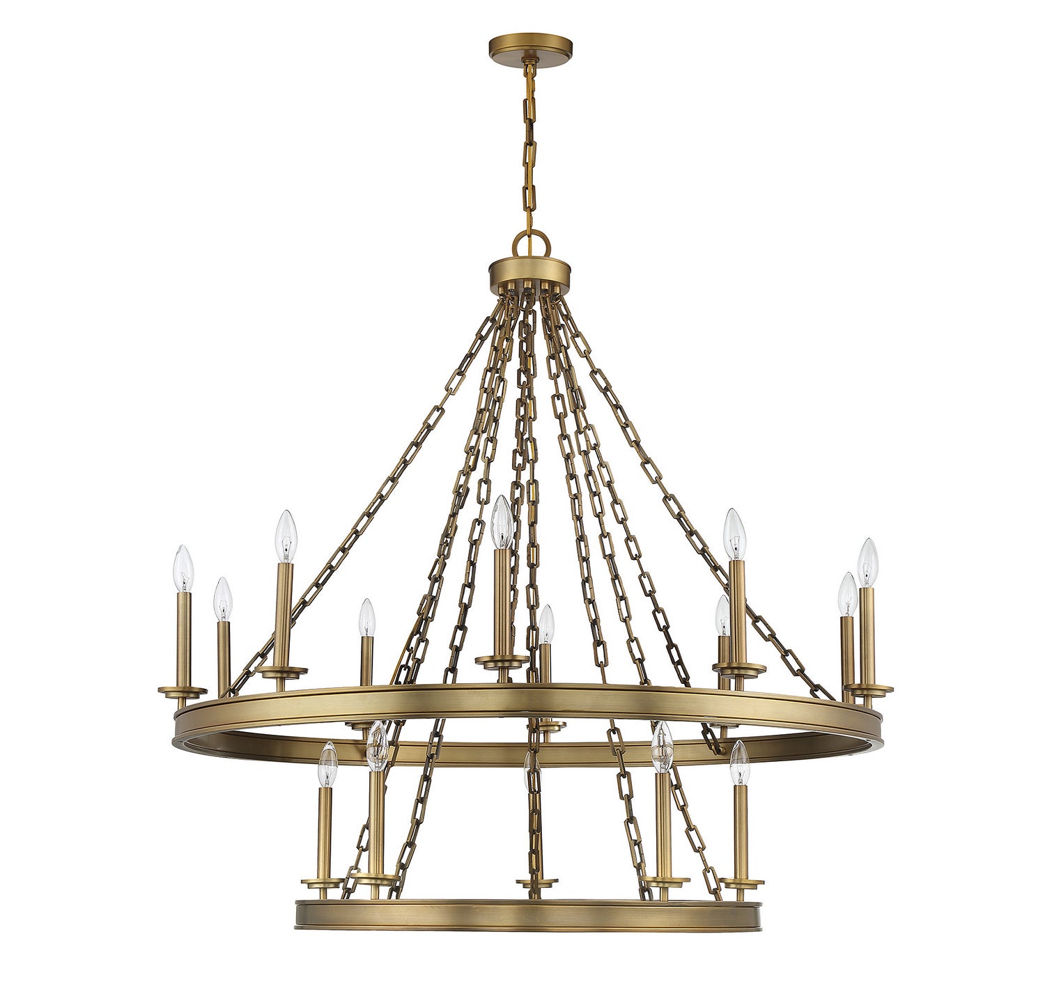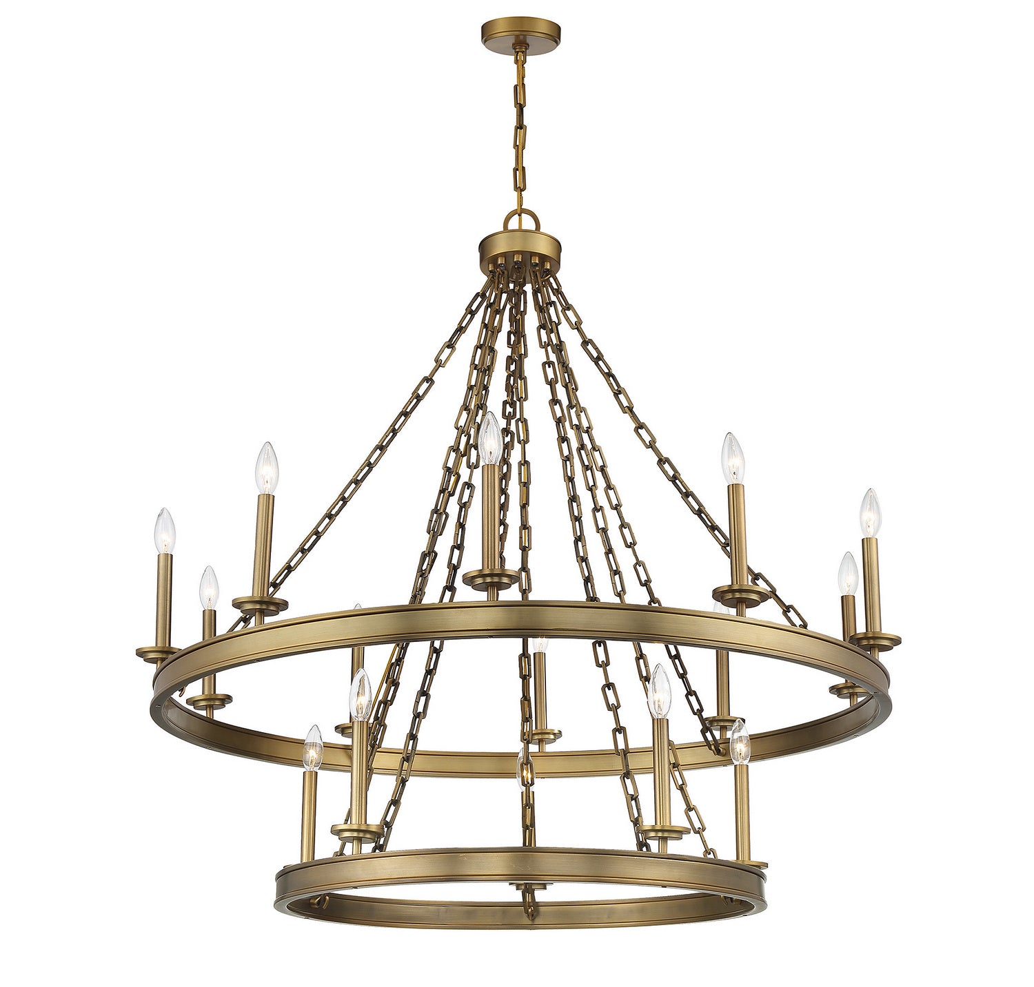 The Seville will be a crowning touch in any room. Two elegant open rings feature exquisite band detailing and a stepped bobeche design while the geometric square chain adds visual interest. The two-tier statement chandelier measures 45'' wide x 43'' high and provides ample illumination from 15 60-watt candelabra bulbs. The Polished Nickel finish is especially striking in contemporary and transitional interiors.