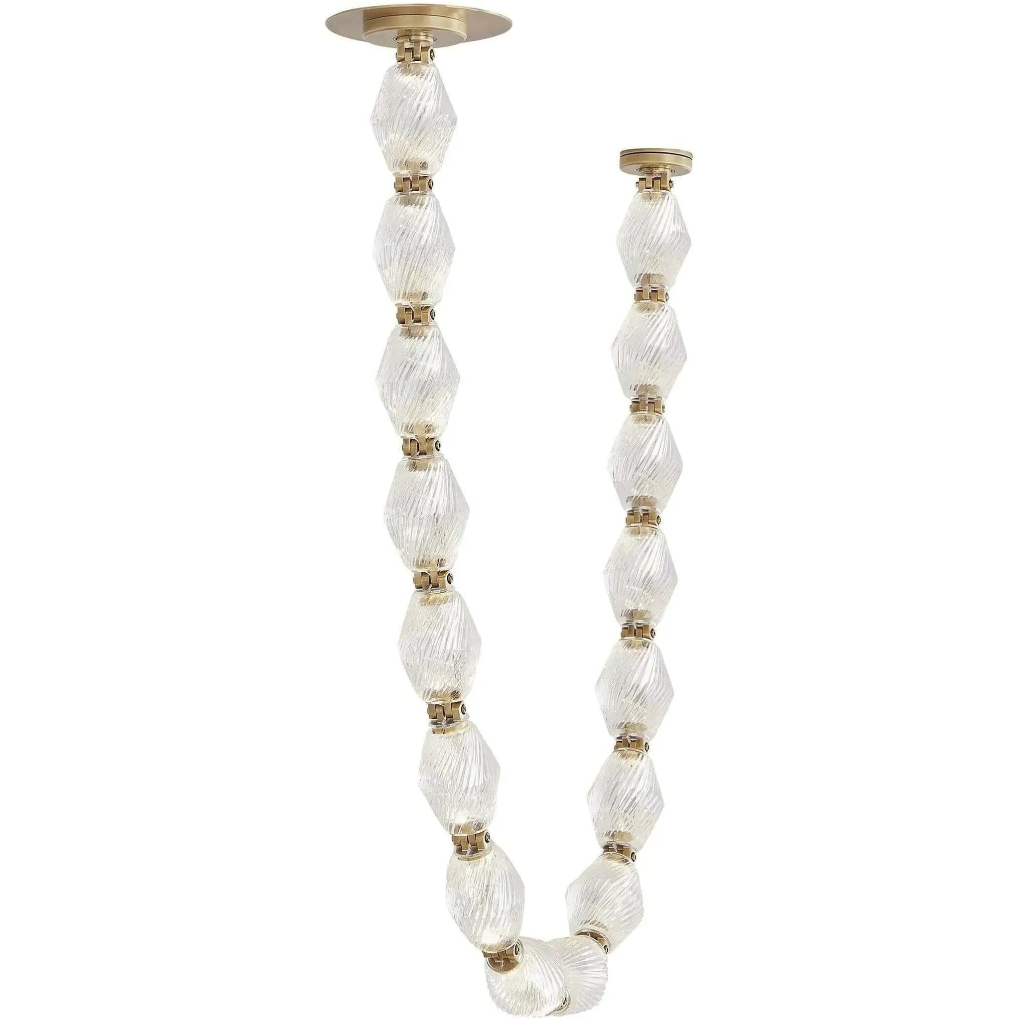 The Collier by Sean Lavin for Tech Lighting exudes luxury and sophistication. Solid faceted crystal fully encapsulates integrated LED modules interlocked by solid brass connectors. Available in multiple length strands for the ultimate in customization. Creates an incredible light sculpture with stunning illumination. The Collier features solid faceted crystal manufactured in the Czech Republic. The natural brass connectors are custom engineered to support the crystal and add additional beauty to the piece. Available with remote or surface mounted driver options. Predetermined length options allow for easy ordering with virtually unlimited versatility. Contact factory for custom configurations. Patent pending.