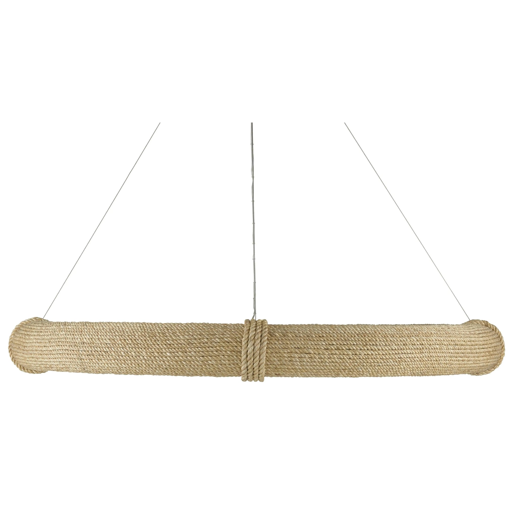During the pandemic, movies were one of Clarence Mallari's sources for inspiration: ''I became fascinated with the shape and function of a lifebuoy and wondered how I could translate it into lighting. It took me some time to come out with the design due to the fact that it was challenging to conceive and arduous to make.'' The frame on this Portmeirion Chandelier is made of wrought iron around which abaca rope has been wrapped for the nautical feel that inspired it. This small version of the Portmeirion has six lights, while the larger version has 12 lights, both of which are suspended on an aircraft cable to make the fixtures seem like they are floating in the sea.