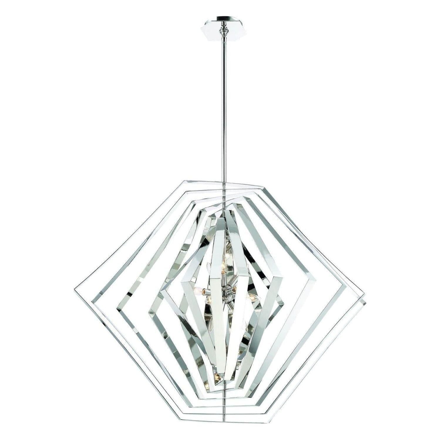 Downtown Chandelier by Eurofase is a sculptural study in geometry and finish — polished chrome hexagonal frames nest concentrically around a central cluster of exposed bulbs to create layered reflections that animate light and space. The result reads precise and architectural, ideal for designers seeking a measured statement fixture.