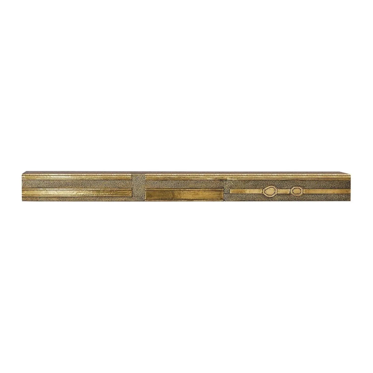 Abstract Block Floating Shelf from Global Views is a sculptural wall shelf that elevates functional storage into luxury décor. Crafted from solid wood and sheathed in a hand-finished metal sheet with a protective coat, its post‑modern geometric relief reads as subtle architecture—clean lines, textured panels and inset planes create a refined, tactile presence on the wall.