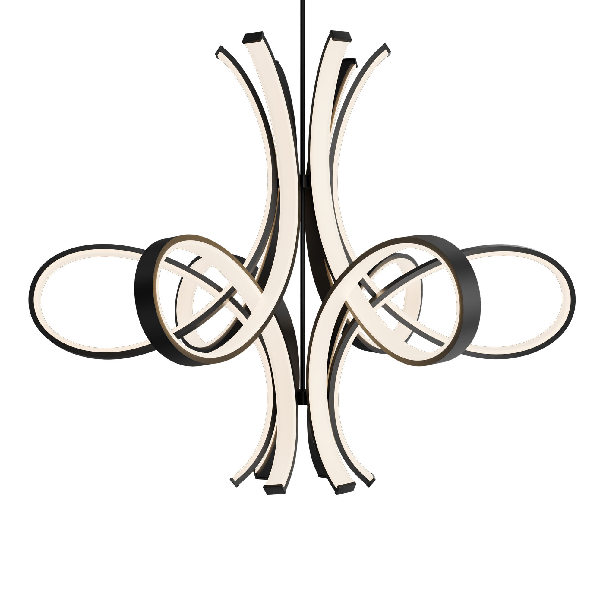 A modern take on the iconic fleur-de-lis shape, the large-scale Fleur de Lis contemporary pendant features gracefully swooping metal arms that evoke a sense of movement and sophistication. Each arm is lined with sleek LED diffusers, offering brilliant yet soft 3000K illumination that fills the room with a warm, inviting glow. This 56-inch sculptural pendant is available in a choice of aged brass and black finishes.