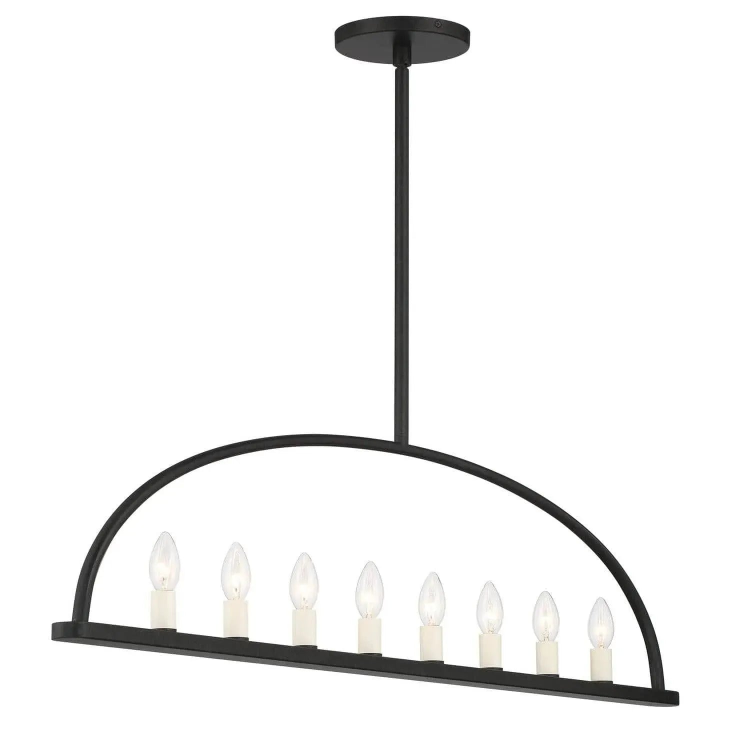 Designed to illuminate large surface areas with a soft, candlelit glow, the Abbott Linear Chandelier enhances gatherings around your dining table or kitchen island. The open, arching frame creates a sense of airiness while delivering a focused row of illumination exactly where you need it. The black steel finish adds a statement touch that complements a range of interior styles, from rustic farmhouse to contemporary minimalism. Crystorama’s Abbott collection is crafted to offer lasting beauty and reliable performance, making it a trusted option for enduring, high-visibility lighting in social spaces.