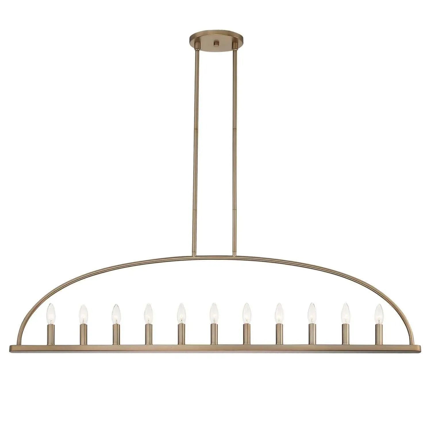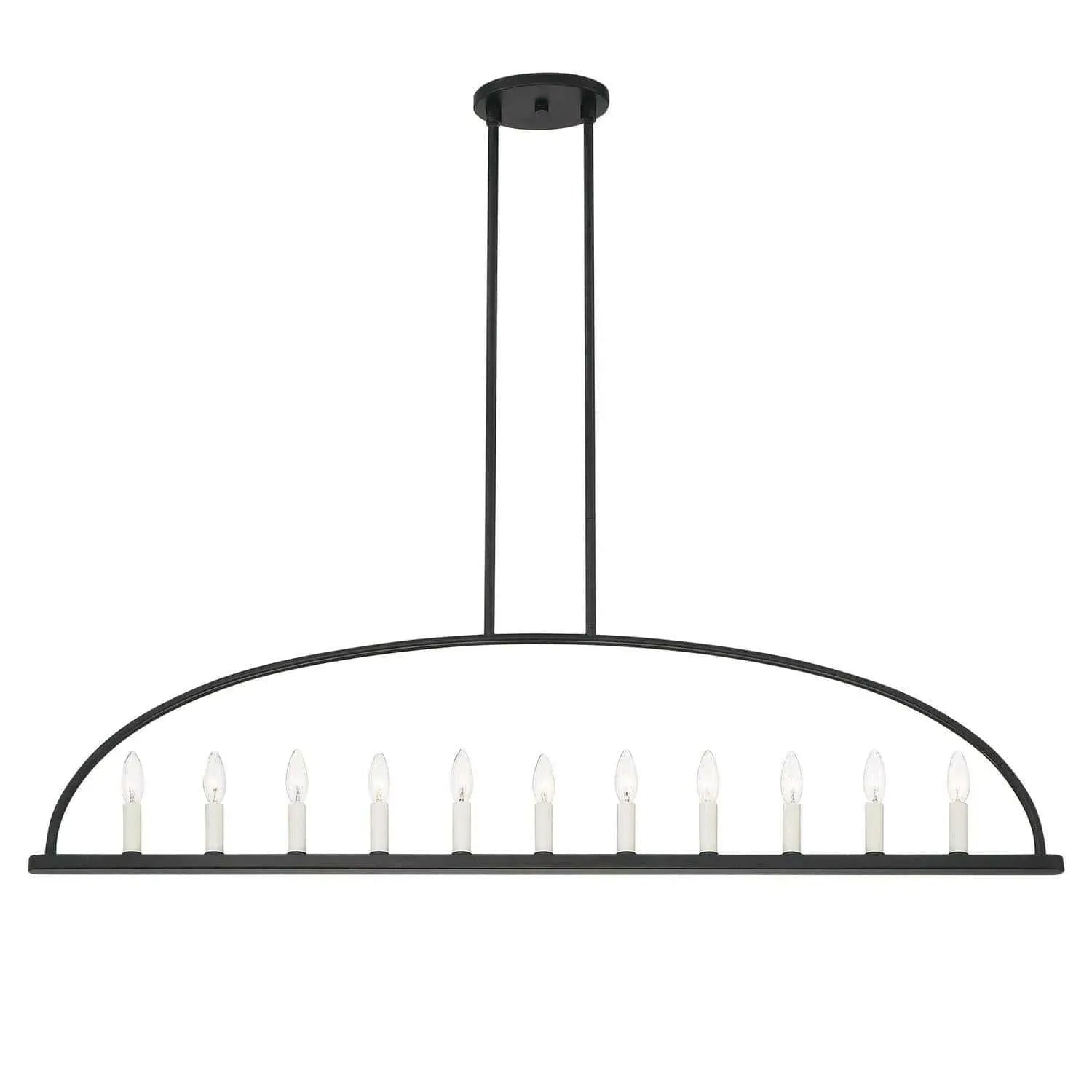 The Abbott Linear Chandelier by Crystorama brings a refined, modern farmhouse silhouette to kitchen islands and dining spaces. Its long, curved black steel frame holds a row of candle-style bulbs, delivering warm, ambient light with clean, contemporary lines.