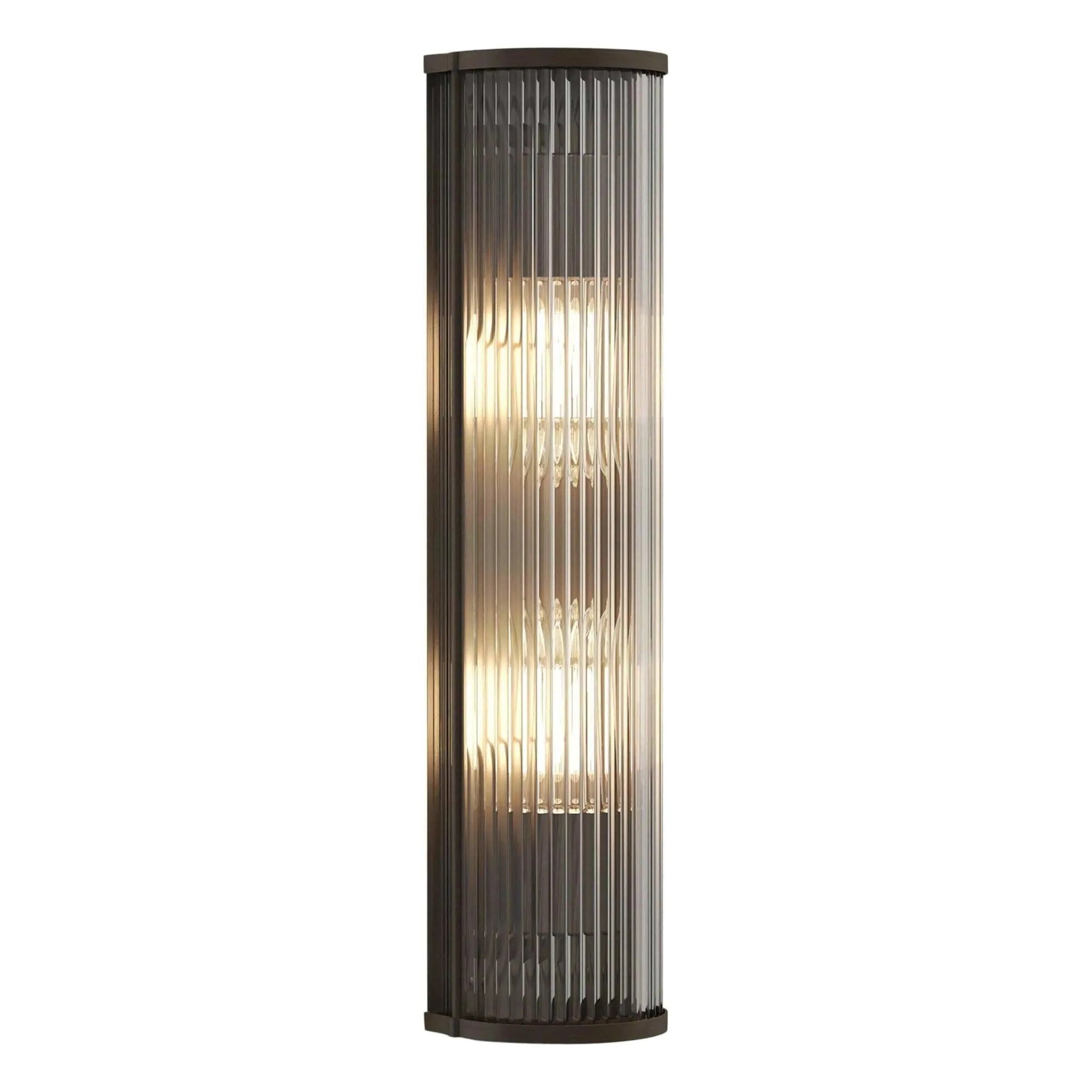 Avignon Round 525 Wall Light by Astro Lighting — a refined vertical sconce that marries sculptural form with functional illumination. The slender, cylindrical profile and fluted glass diffuser create a soft, tactile glow while the dark metal end caps deliver a contemporary, architectural presence.