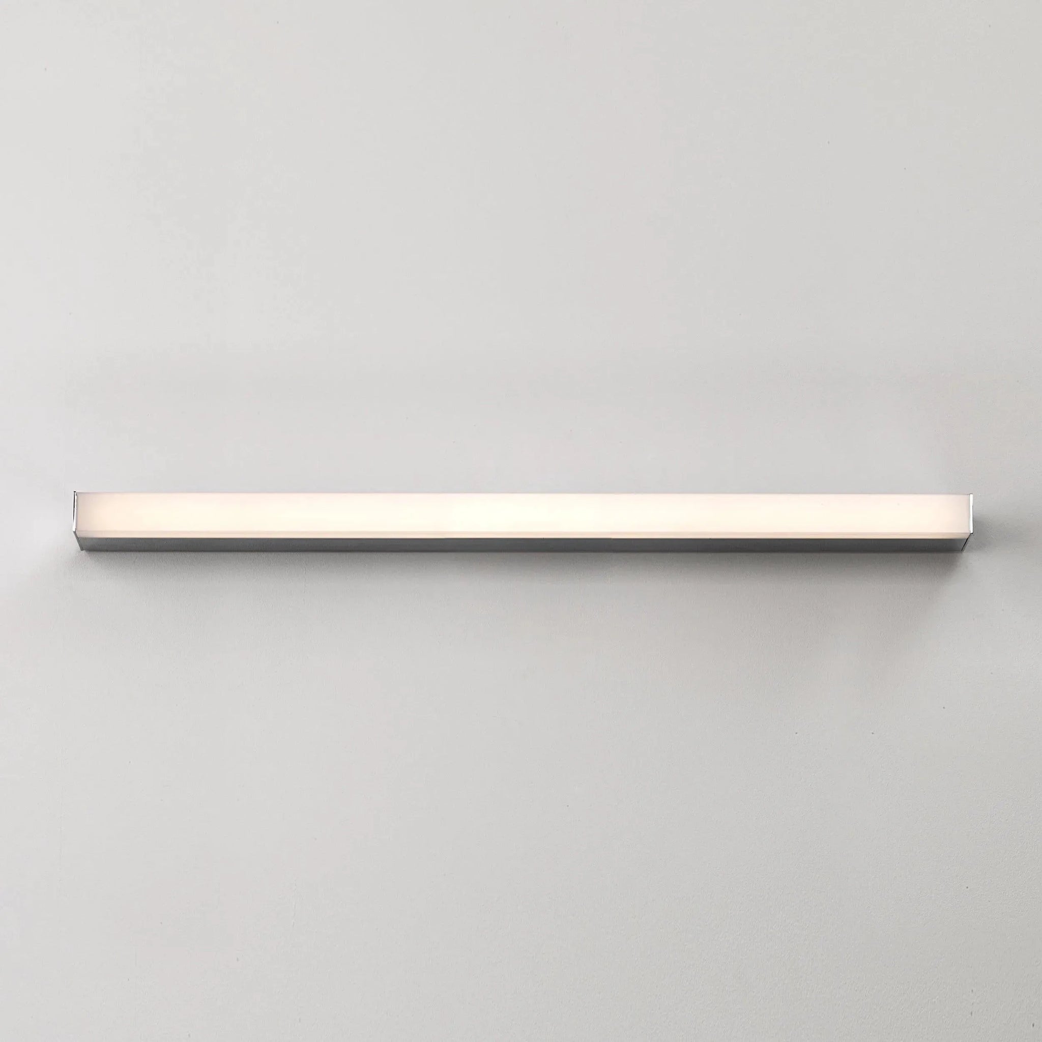 Astro Lighting’s Sparta 900 LED Wall Light is a refined statement for elevated interiors—an elongated, low-profile luminaire that balances minimal form with technical excellence. Its polished chrome aluminium body and opal diffuser deliver an even, warm 3000K glow ideal for mirror illumination and ambient wash lighting.