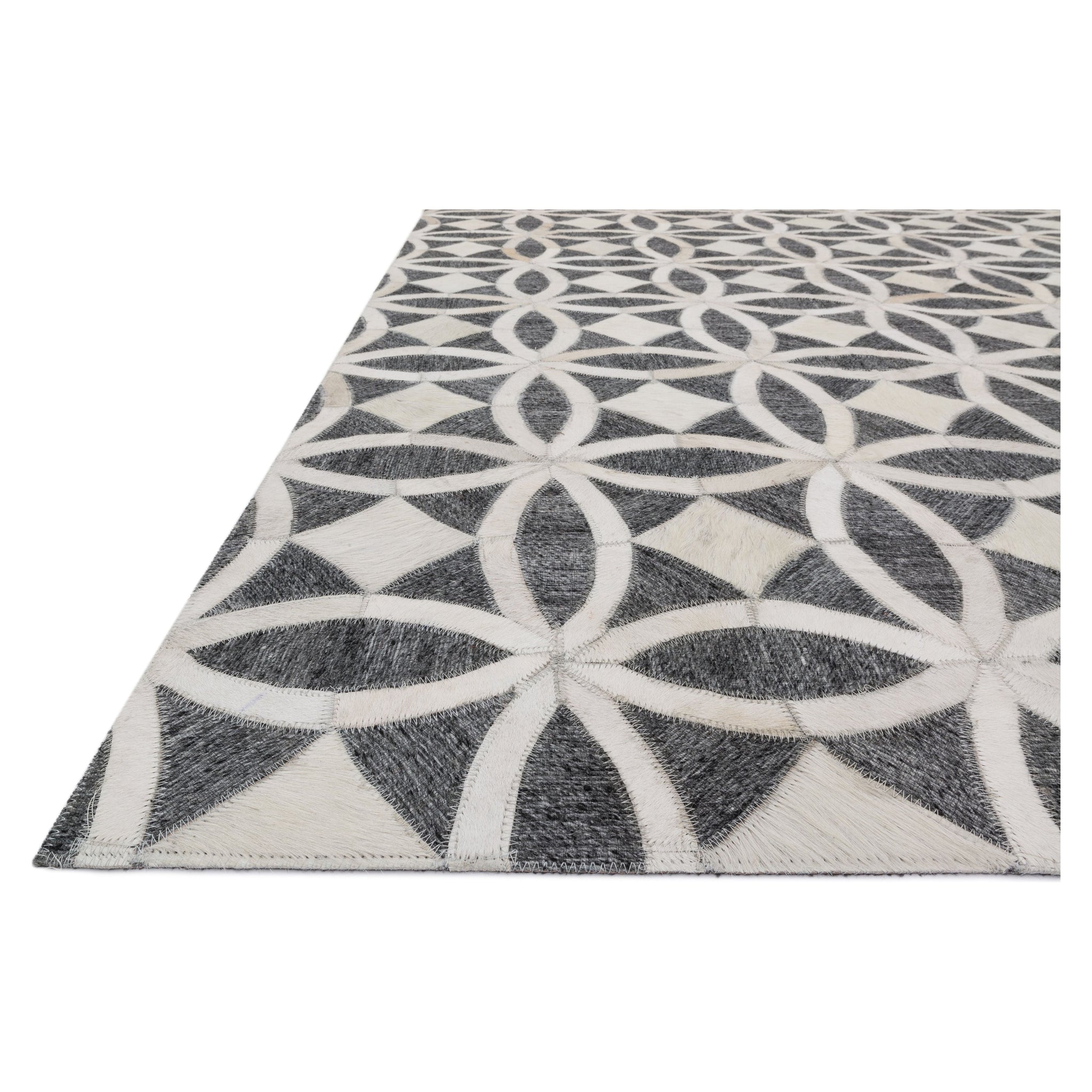 stunning Dorado Db 06 Graphite Ivory rug from India. This unique collection combines hand-stitched authentic cowhide with hand-woven viscose, creating a striking and unconventional design. The Dorado Collection offers versatility with four different sizes to choose from, including a runner for narrow spaces.