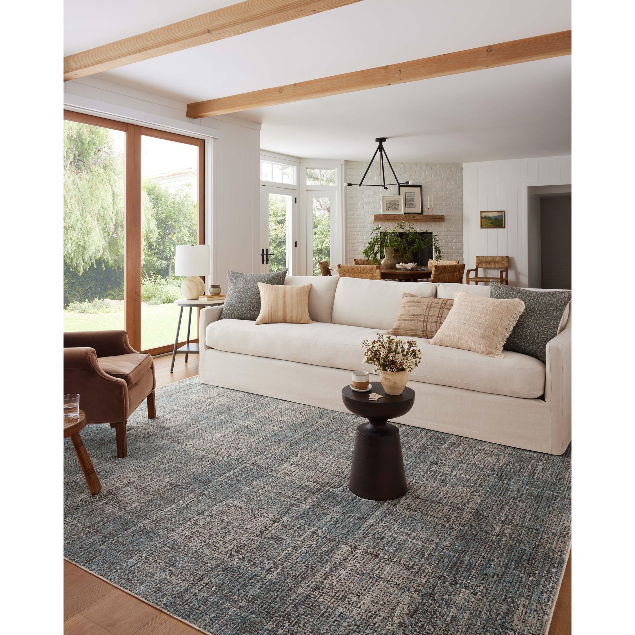 Ember Emb 09 Denim Charcoal area rug from the Ember Collection by Angela Rose x Loloi. This modern flatweave rug features a classic plaid pattern, making it a versatile addition to any room in your home. Crafted from 100% space-dyed polyester using power-loom technology, this rug boasts durability and a rich color palette that will enhance your space.