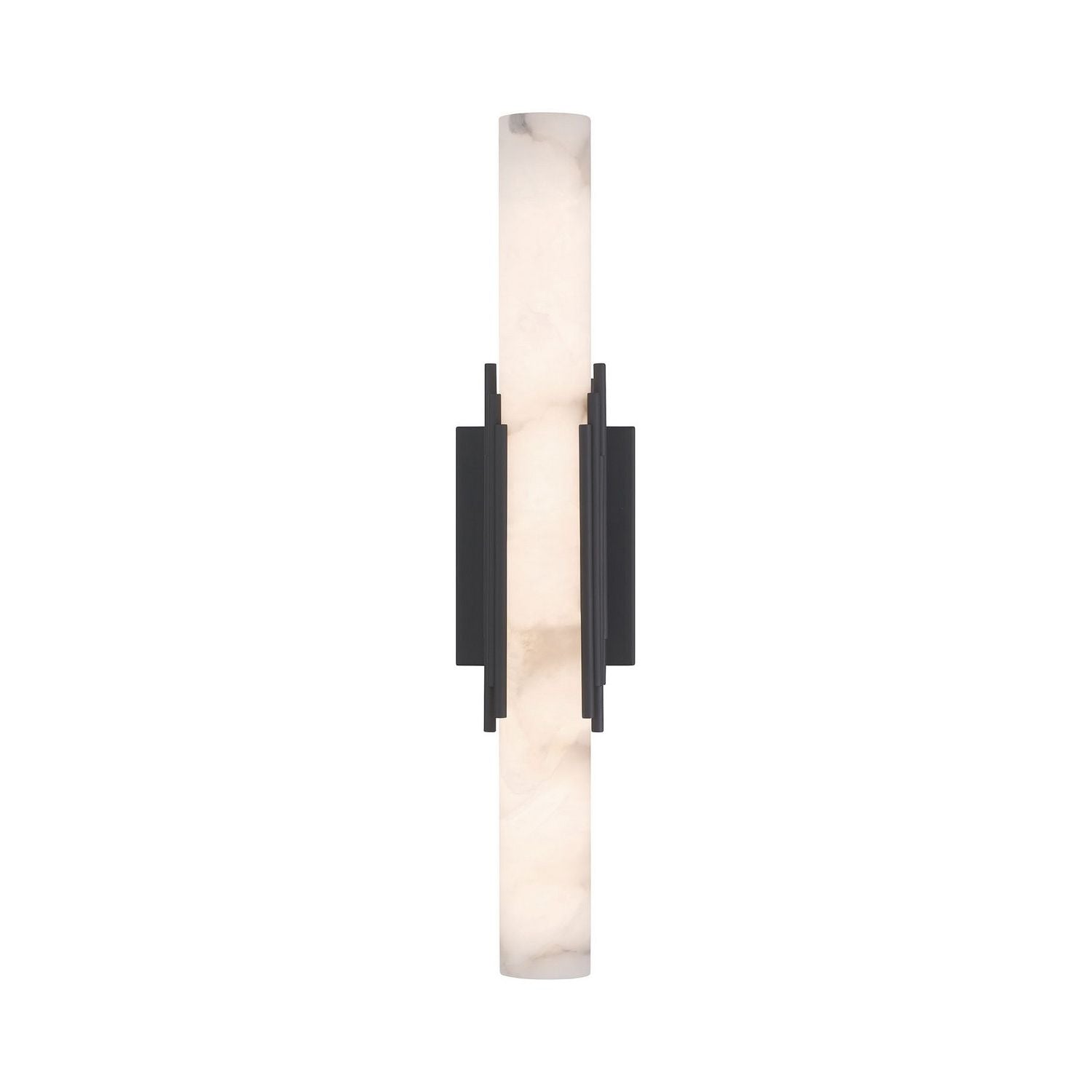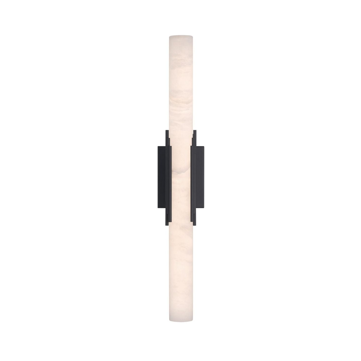 Key features: natural alabaster shade, precision steel construction, integrated LED (CRI 90, 3500K), dimmable performance, available in 16", 22" and 28" heights. The urban bronze and brass-inspired finishes add material warmth while the axial profile keeps the composition minimal and architectural.