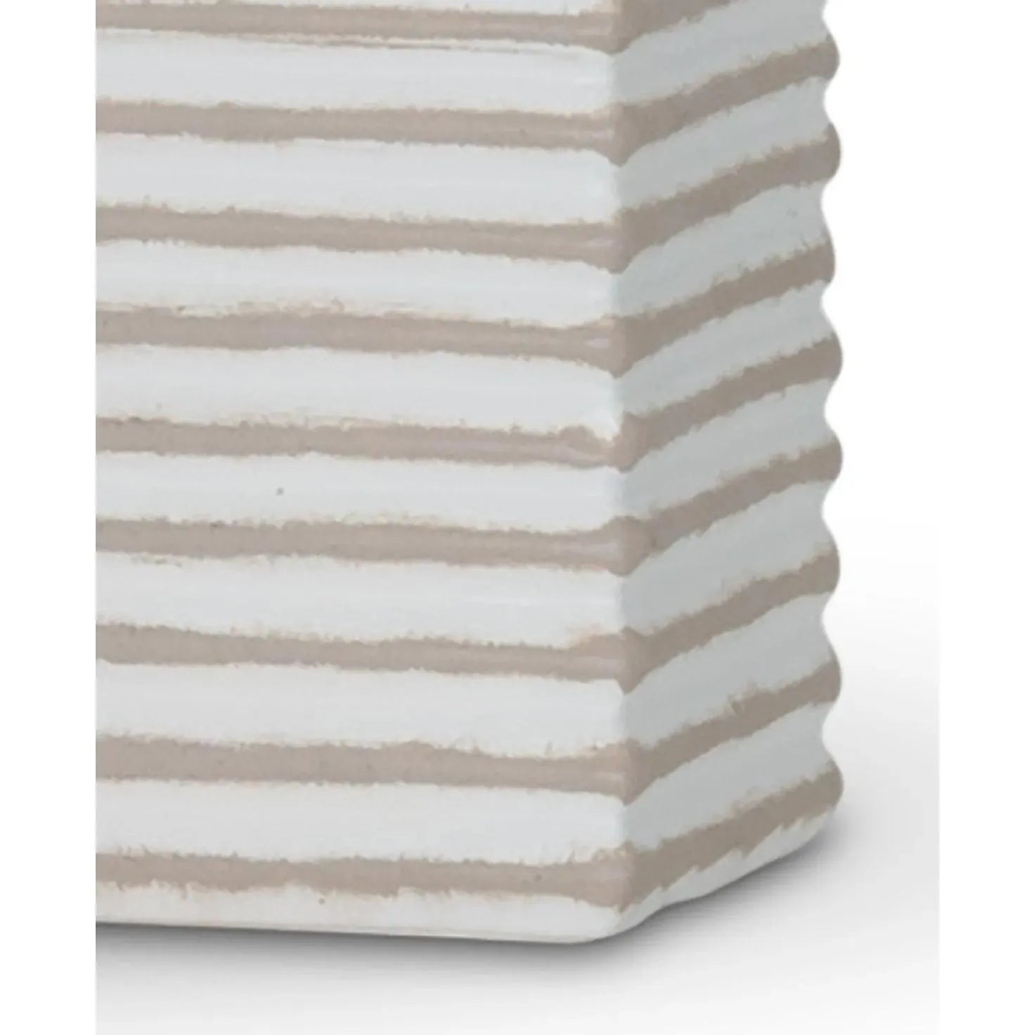 For a neutral addition to a modern living room, look no further than this table lamp. Textural and organic, this table lamp features a White & Taupe matte finish on its rectangular body. An oval Off-White cotton shade contrasts the sharp corners of its silhouette.