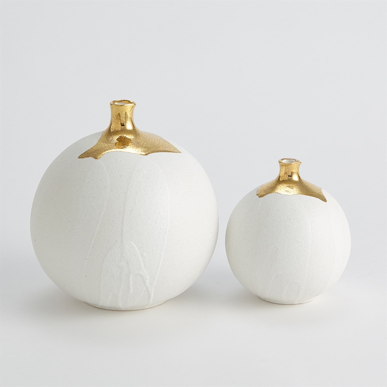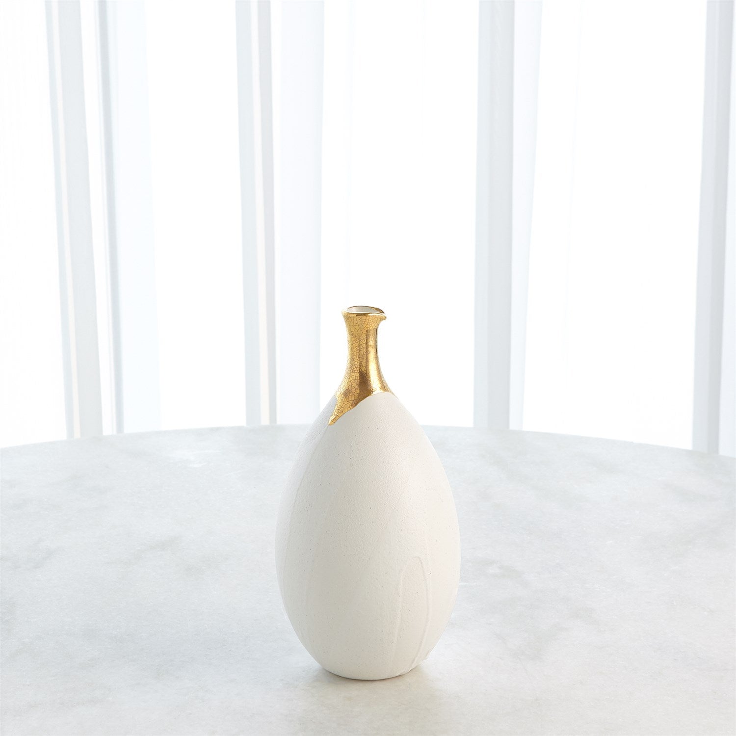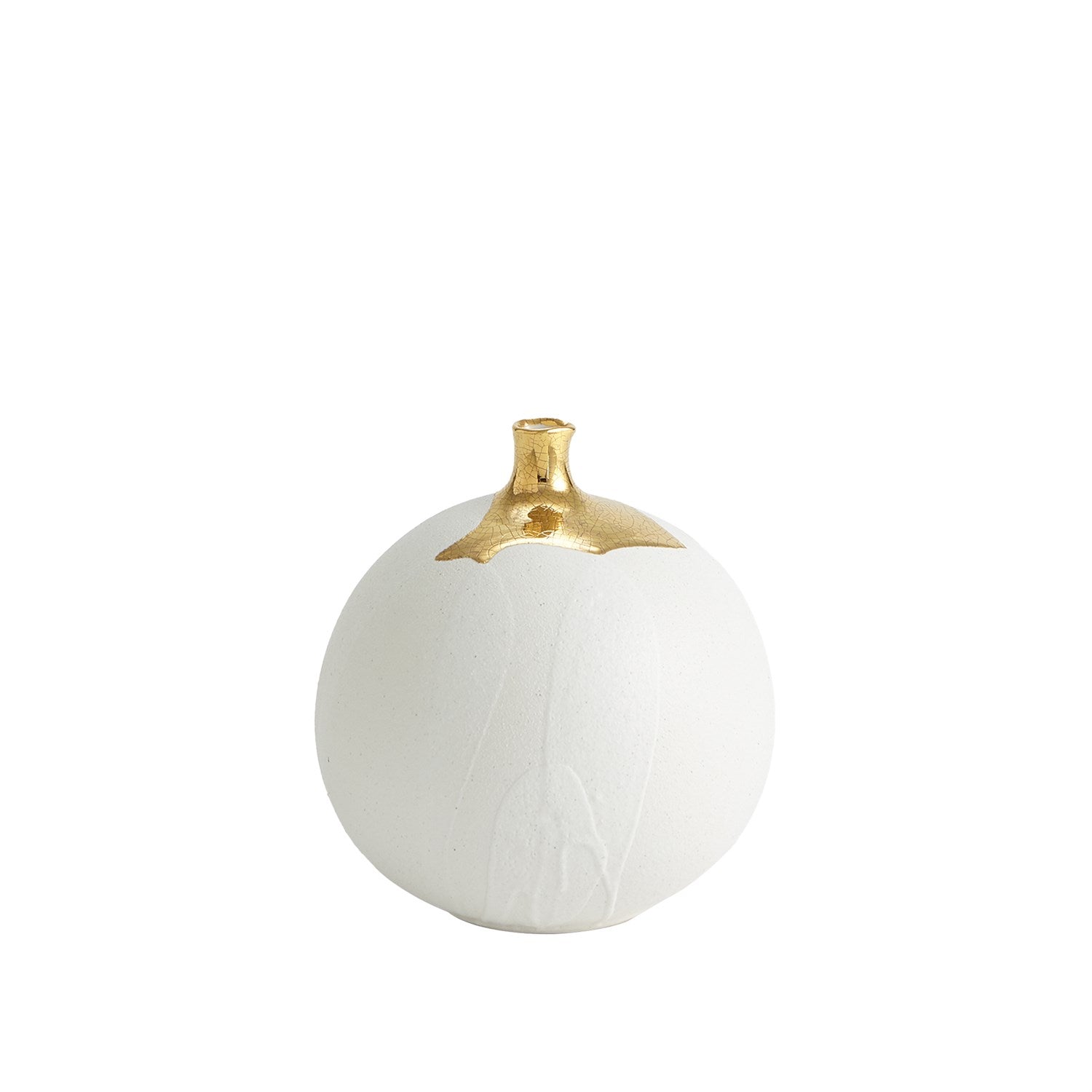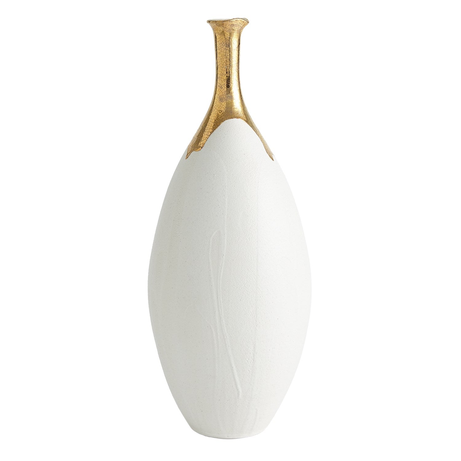The Dipped Golden Crackle Vase Collection is made of Italian slip cast ceramic and each vase is hand dipped in 24-karat gold with crackled detail.