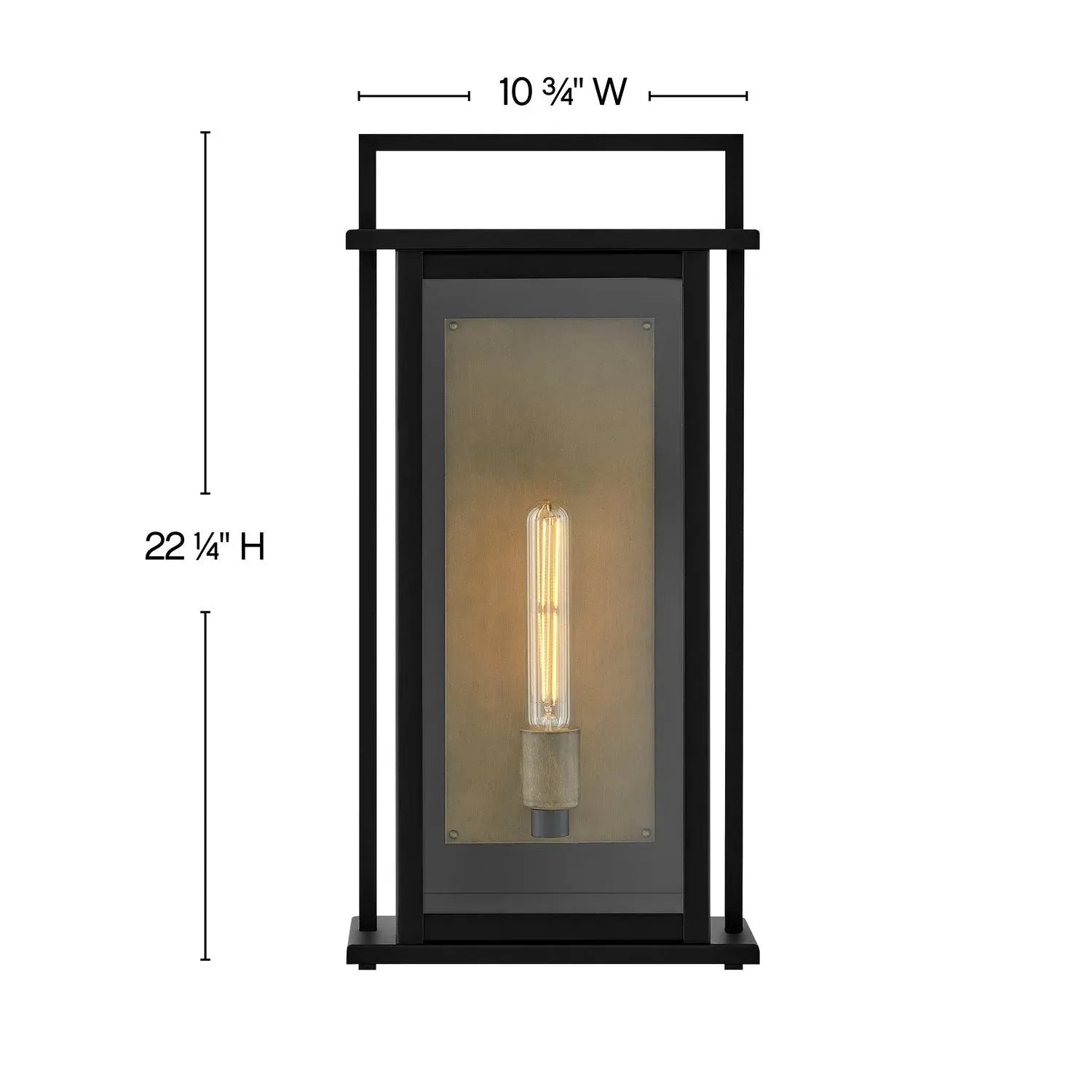 Sleek but stately, Langston demands attention with its bold silhouette in Black and a gleaming Burnished Bronze reflector. Available as an over-scaled option, Langston delivers a stunning light beam spread thanks to its extra-large panes of clear glass.