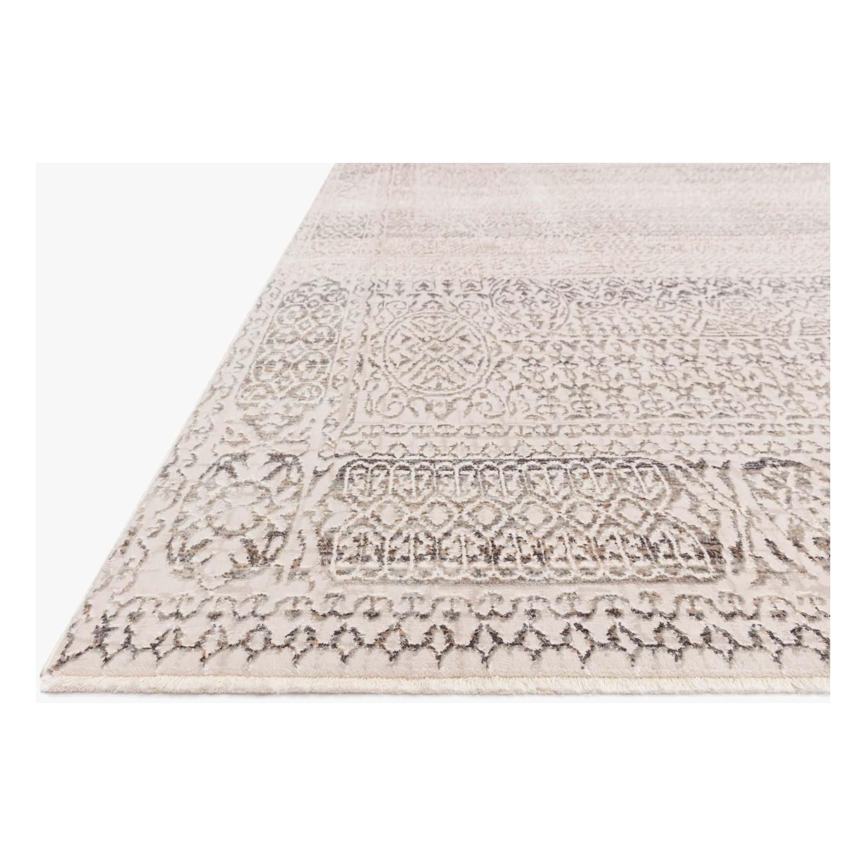 Homage Hom 05 Ivory Silver, a timeless addition to your home decor. The Homage Collection draws inspiration from classic designs, featuring a distressed pattern that exudes elegance. Crafted in Turkey, this rug is power-loomed using a blend of polyester and viscose, offering a luxurious feel with a subtle high-low texture. Step onto the Homage rug and experience its silky softness underfoot.