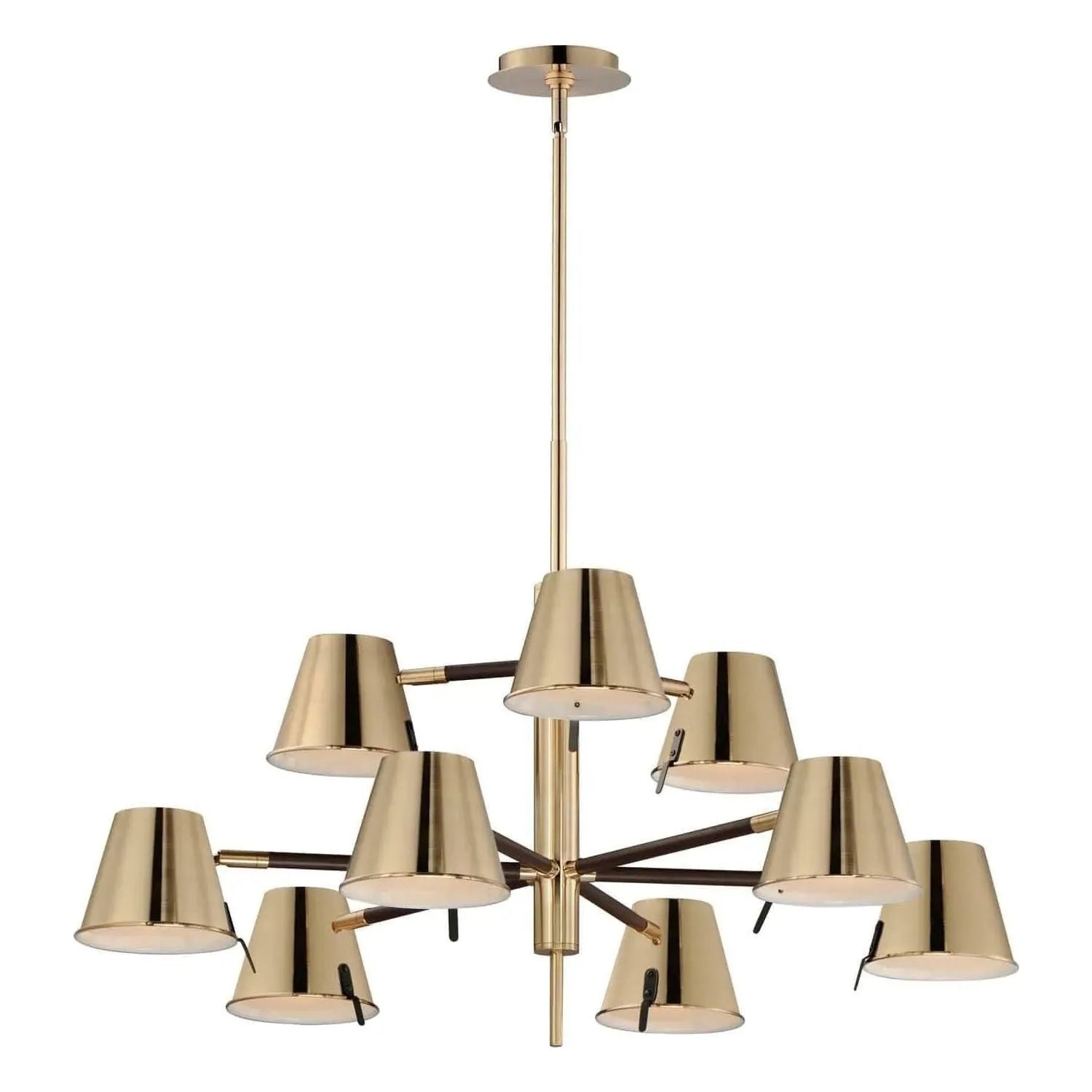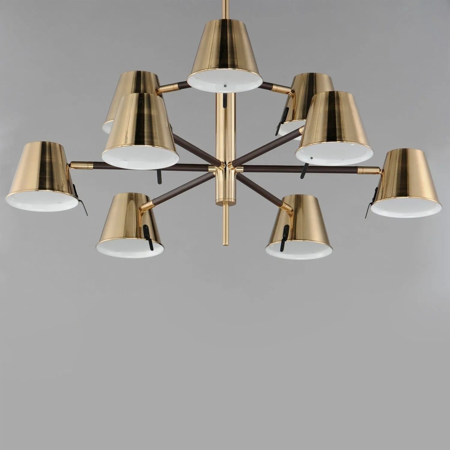 Metal shades finished in a warm Heritage Brass are accented with Dark Bronze metal straps and Tobacco Brown leather wrapped details. Recessed within the metal shades, a frosted glass diffuser softly casts the LED light source within. Paddles on every shade allow the light to easily be directed upward or downwards. With the accompanying wall sconce in the collection, a touch switch is located on its top and the convenient paddle at its end allows you to direct the light source where needed. Tasteful and timeless, the reimagined classic metal drum shades are elevated with technology and convenient features. Perfect for entries, eating areas, and bedside applications.