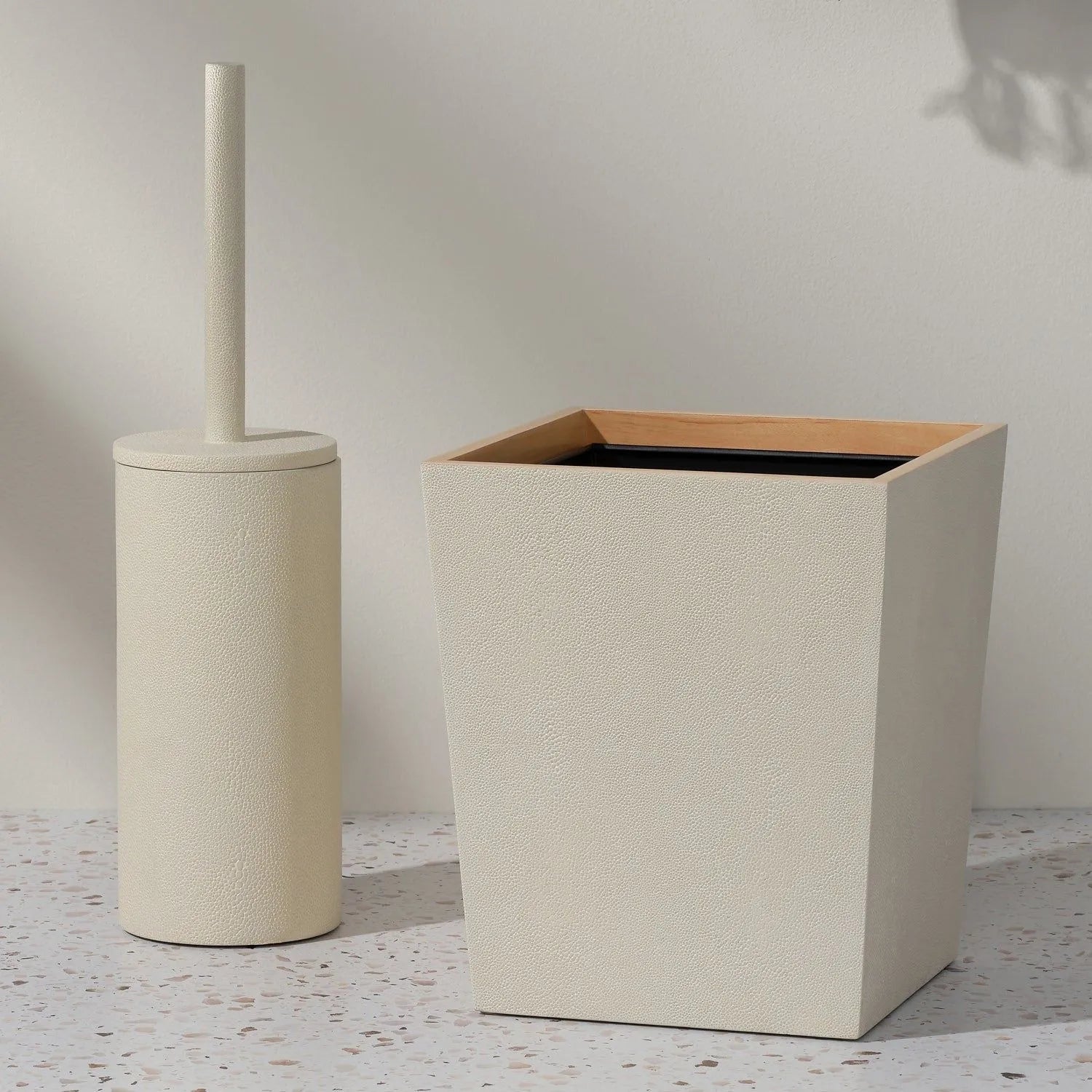 Every piece is crafted to highlight the natural “eye" pattern inspired by authentic shagreen, and topped with a veneer trim.Now available in black!