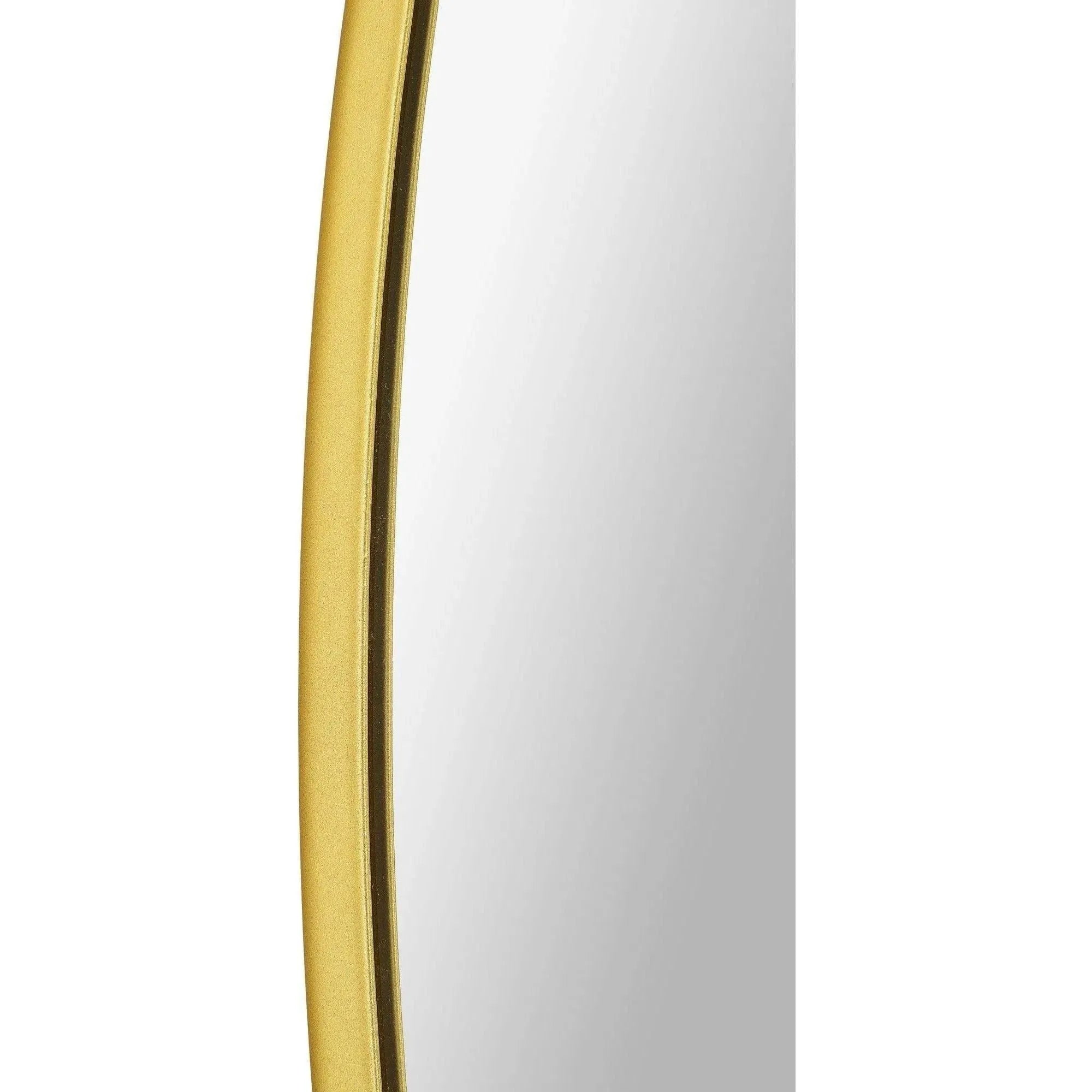 Set atop a vanity or entryway table, this round mirror adds fresh angles and dimensions to the home. The thin gold iron frame bringing a beaming tone to the space it rests within. With a 48-inch circumference, its size only enhances its opulent quality.