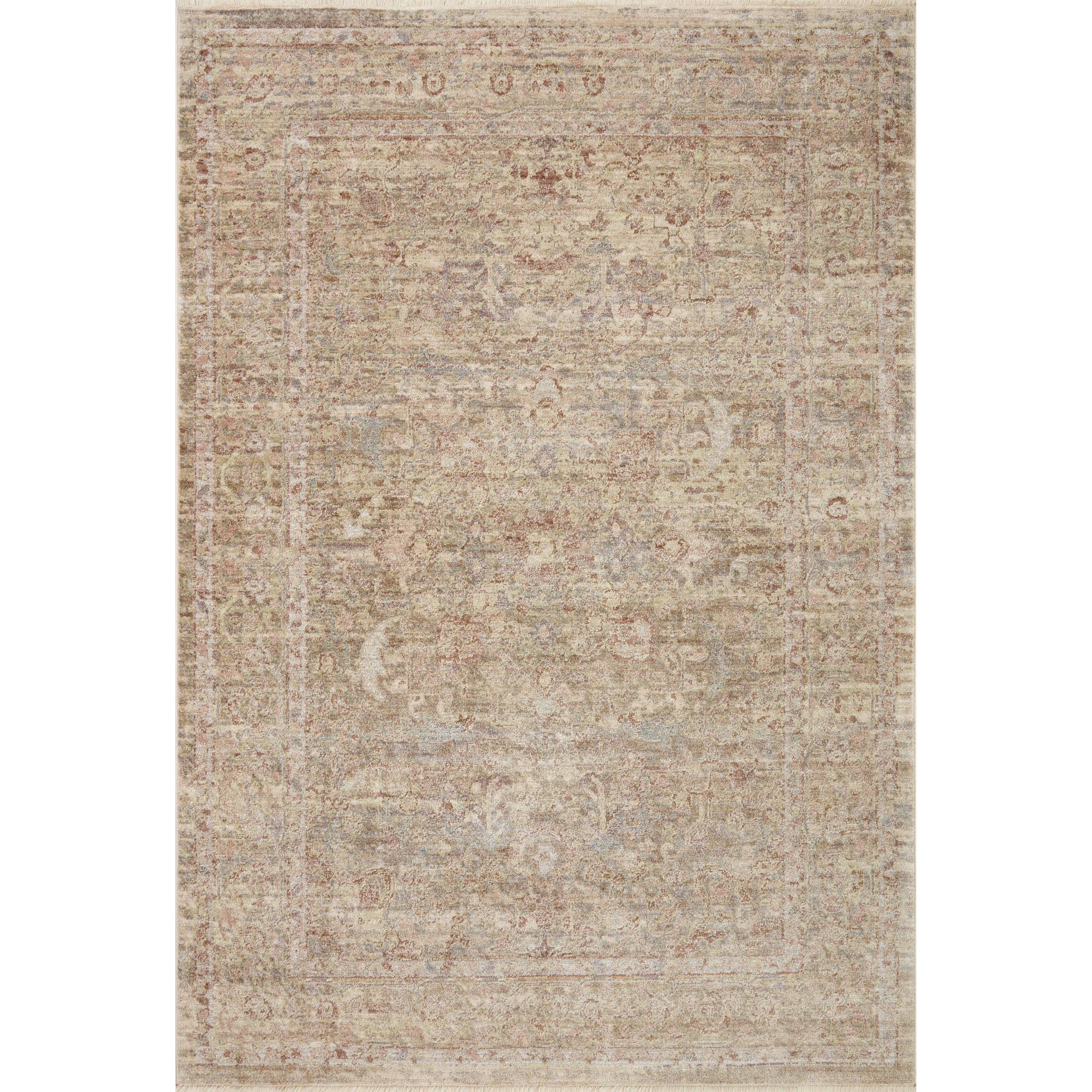Sonnet Snn 04 Moss Natural rug from the Sonnet Collection. This versatile area rug features traditional motifs that seem to float and fade, thanks to a unique power-loomed construction blending different textured yarns. Crafted from space-dyed polypropylene and polyester, the rug offers a beautiful gradient of colors that change with the light. Most sizes come with a subtle fringe detail, adding to the handmade look of this meticulously designed piece.