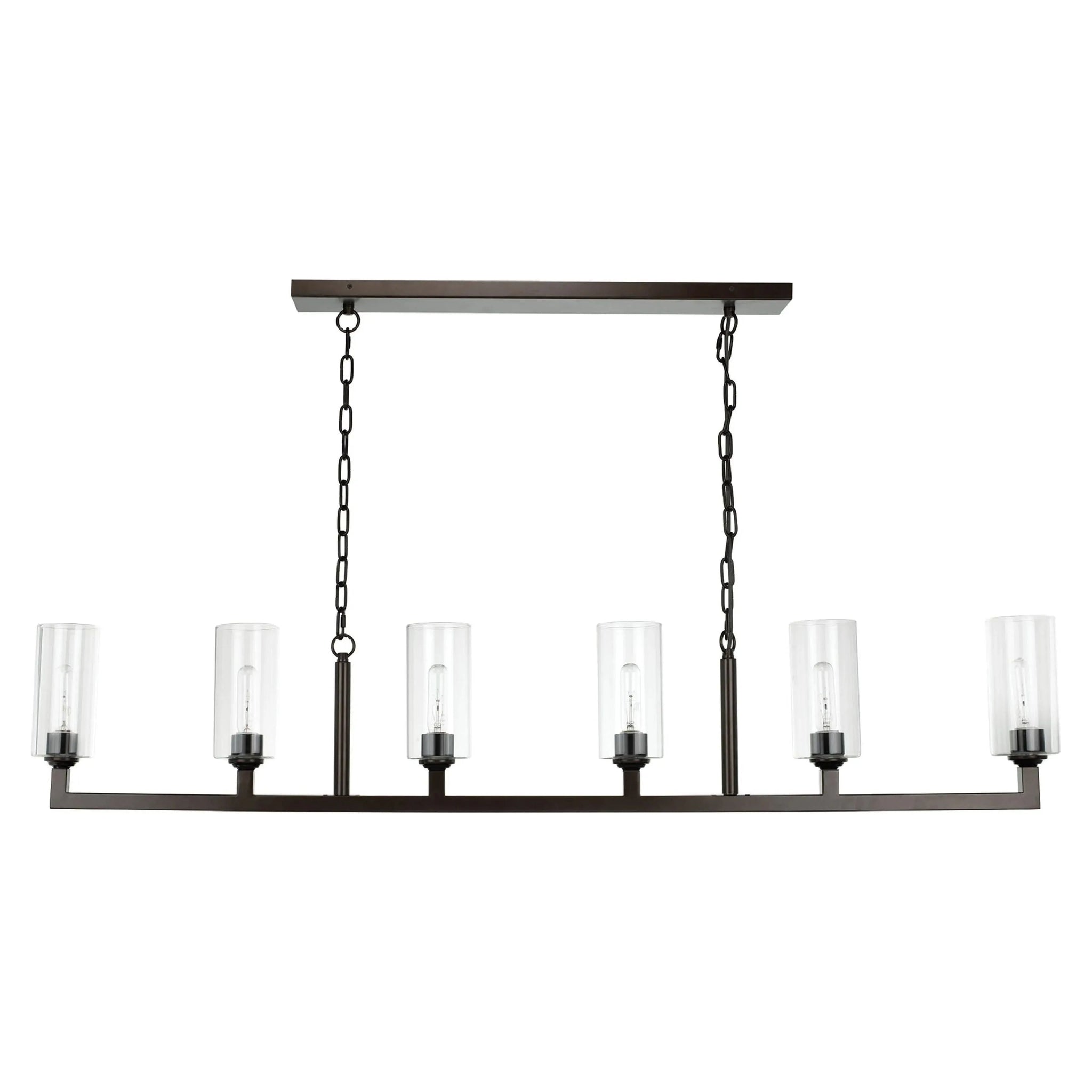 Linear Chandelier by Jamie Young Company — a refined statement fixture that pairs minimal geometry with artisanal finish. The elongated steel bar and paired suspension chains create a balanced, architectural silhouette ideal for dining rooms, kitchen islands, or entry galleries.